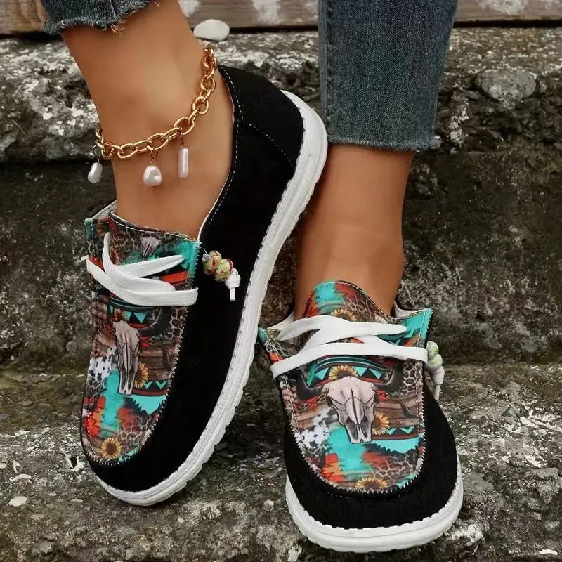 New Print Flats Shoes Summer Spring Casual Canvas Loafers For Women