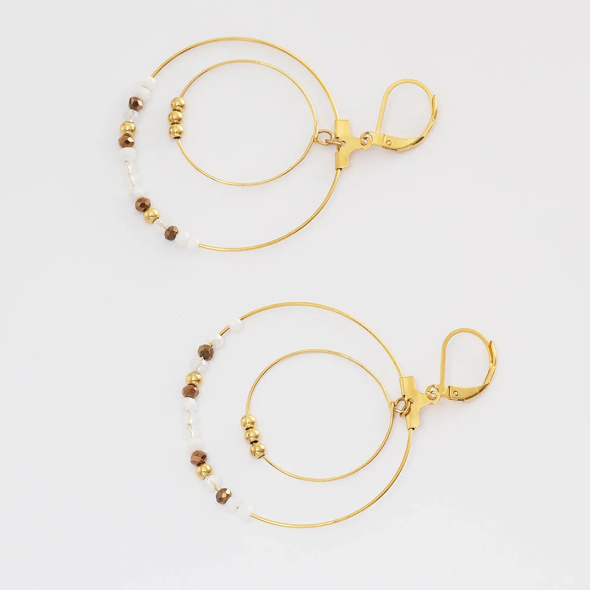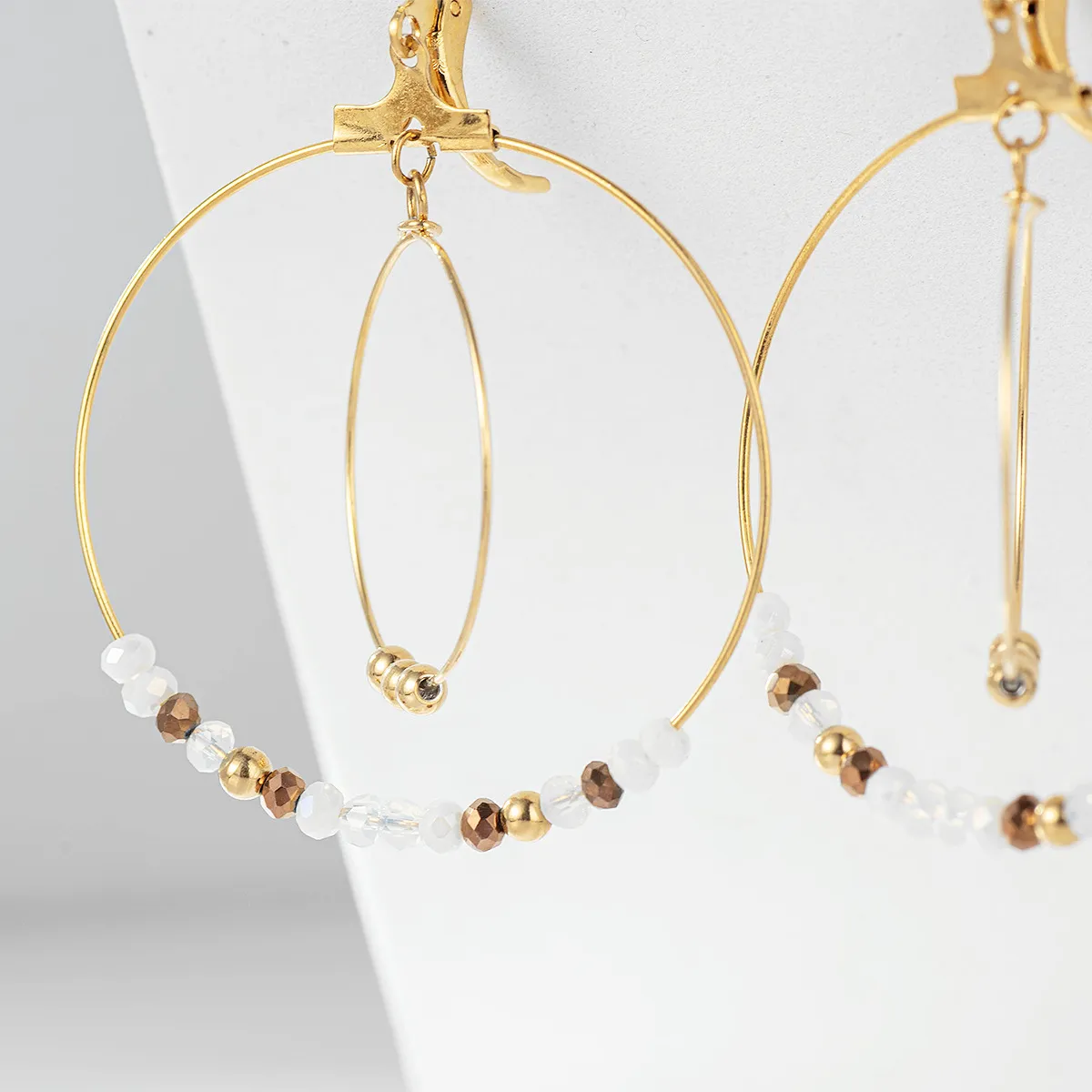 The ring design adds a touch of modernity and complements the natural stone pendants, creating a balanced, elegant look that is both fashionable and timeless. The minimalist approach to design ensures that the earrings can be paired with a wide variety of outfits, from casual attire to evening wear.