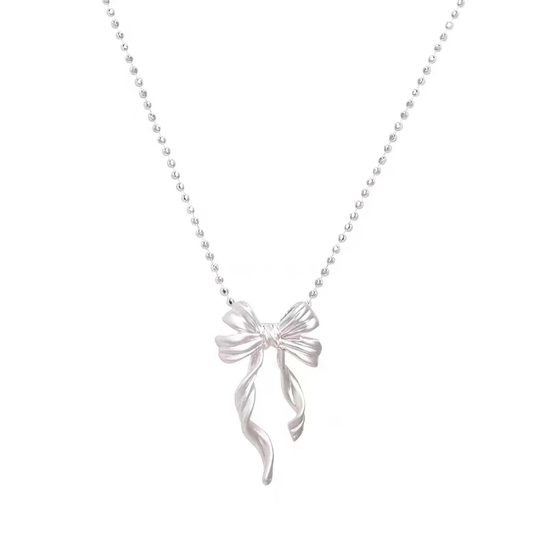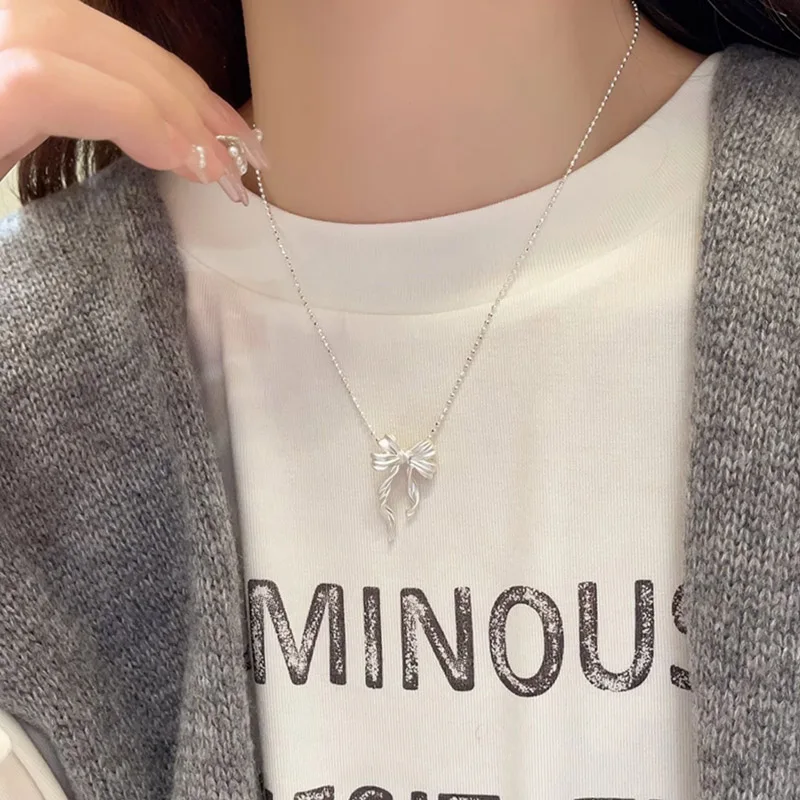 New S925 Sterling Silver Elegant Bow Pendant Necklace