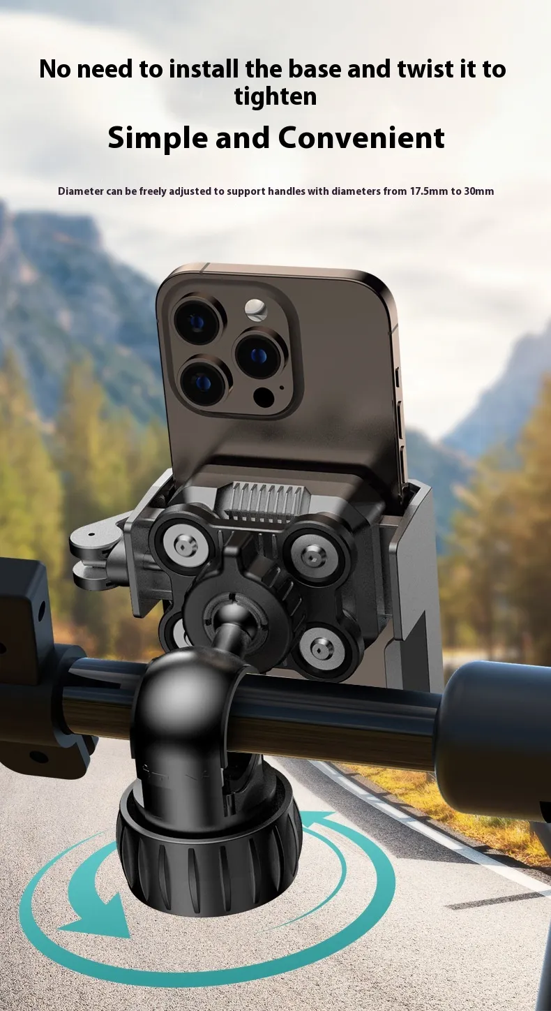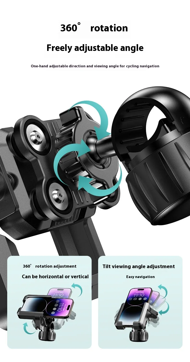 Crafted with durable, weather-resistant materials, this holder withstands rain, wind, and bumpy terrains while keeping your phone in place. The 360° rotating ball joint lets you adjust the viewing angle freely, so you can check navigation, take calls via Bluetooth, or enjoy your music playlist – all hands-free.