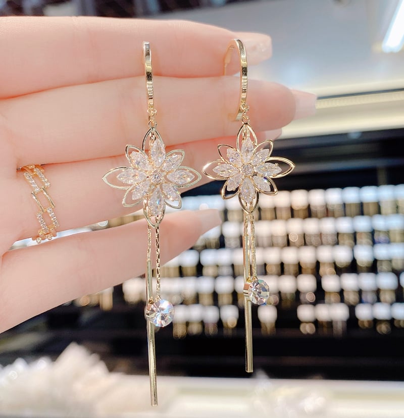 - 1Pair* Brilliant Flower Fringe Earrings