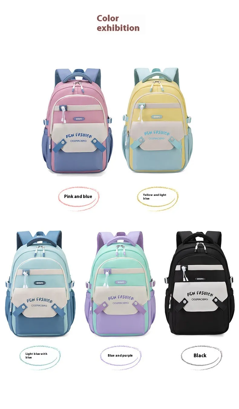 Made from high-quality, durable materials, this schoolbag is built to withstand the wear and tear of daily use. The sturdy zippers and reinforced stitching ensure that the bag can handle heavy loads, while the soft yet supportive straps are adjustable for a comfortable fit. Whether you’re carrying light or heavy loads, the New Student Colorful Contrast Color Schoolbag is designed to keep you comfortable throughout the day, with an ergonomic design that helps distribute weight evenly.
