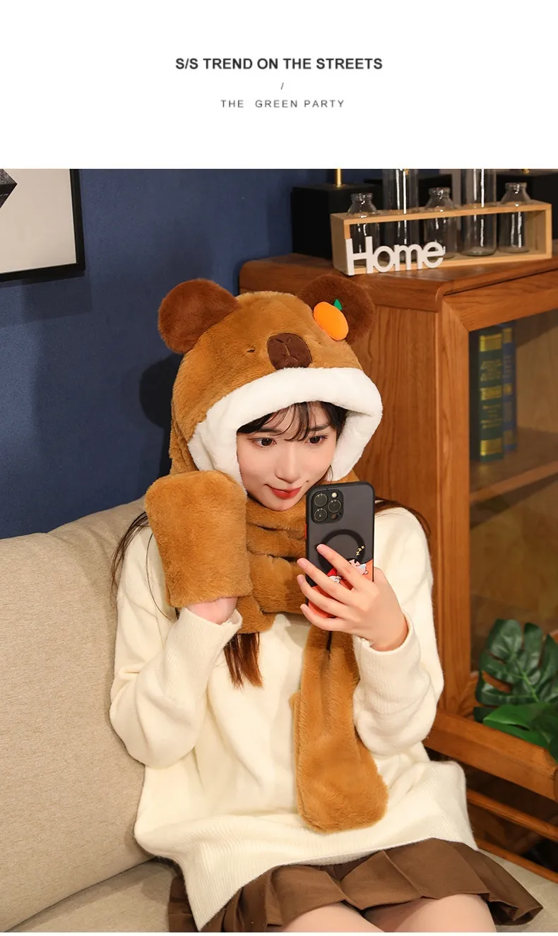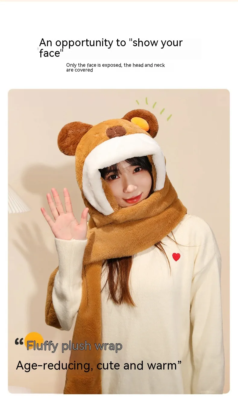New Year Gift Cute Bear Hat Scarf Gloves Three-in-one