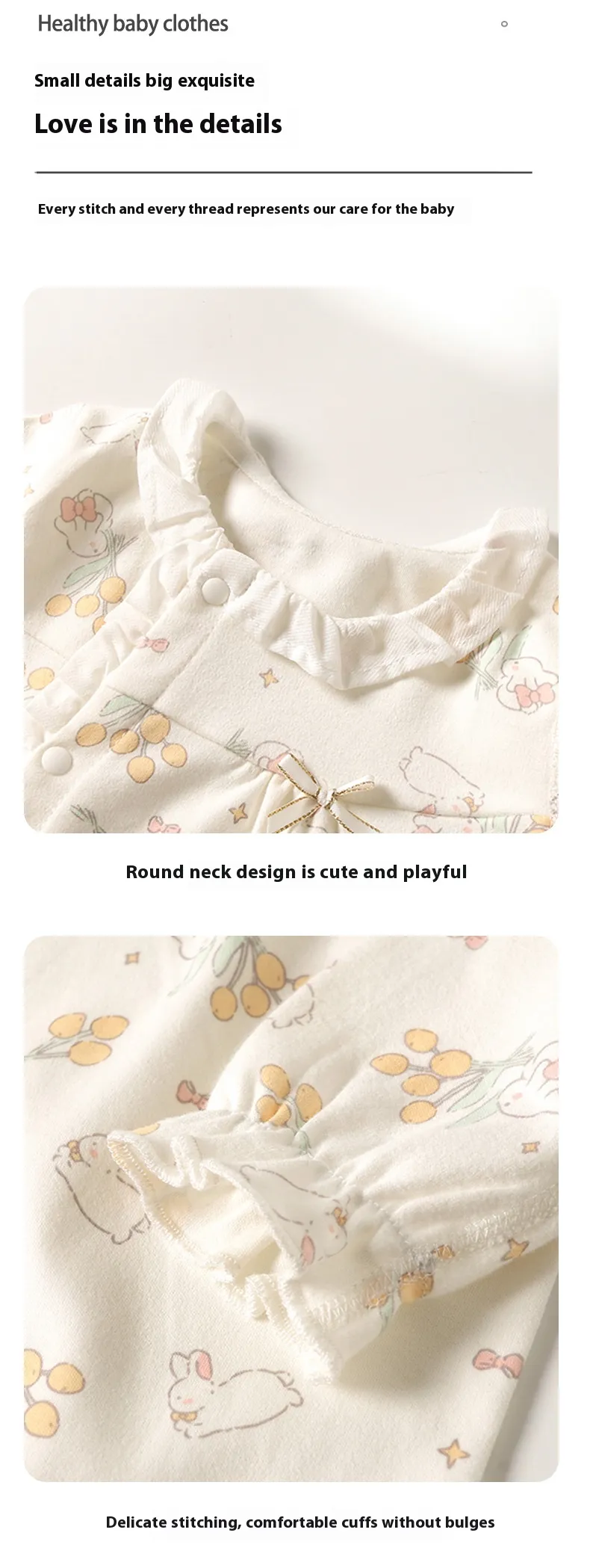 Features convenient snap-button closures or a full-length zipper for quick changes, making it simple to dress and undress your wriggly little one.