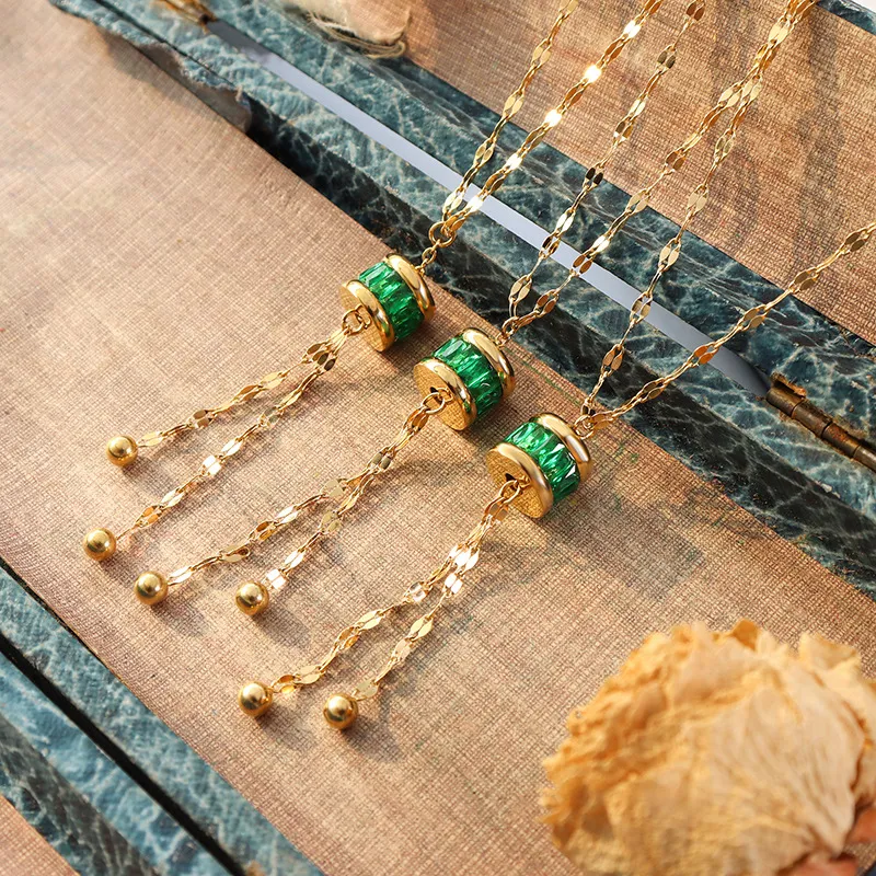 Home › Plants, Gifts, Toys & More › Gift-tree-niche-design-retro-light-luxury-emerald-tassel-pendant-necklace