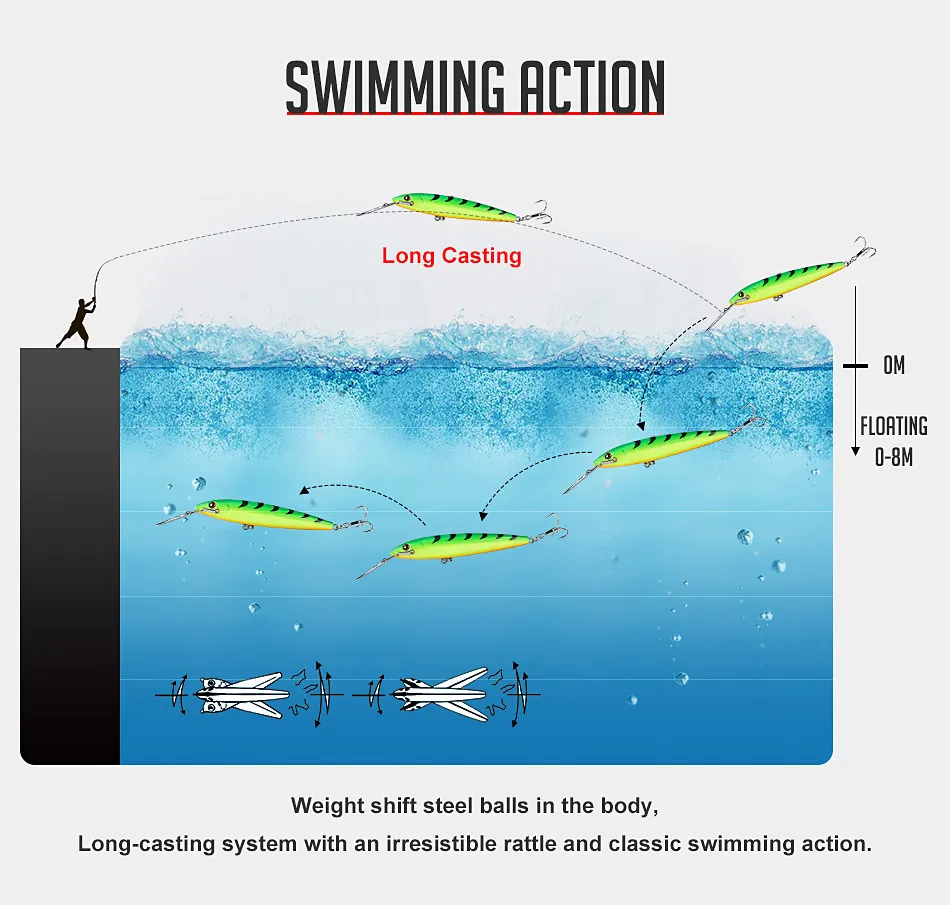 Whether you're fishing from a boat or a pier, this bait is ideal for deep-sea and offshore fishing. Its long-distance casting capability and realistic movement make it perfect for targeting large game fish in the open ocean.