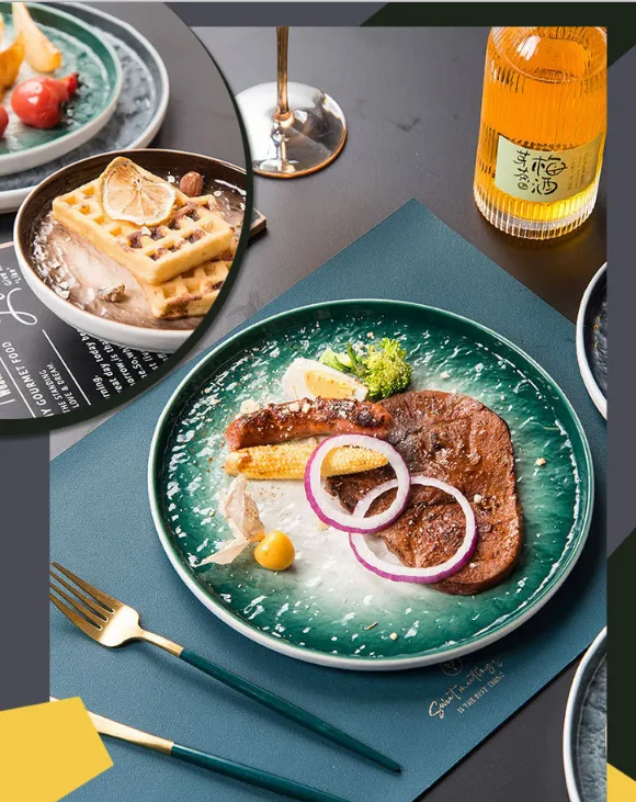 With its high-quality craftsmanship and elegant appearance, Nordic Net Red Ceramic Steak Round Flat Plate Home Creative Dish Plate makes every meal feel special.