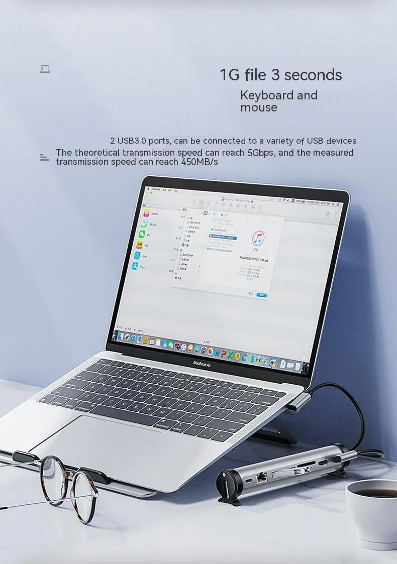 With the Notebook Bracket Docking Station Converter, you can easily expand your laptop's capabilities while improving your posture and workspace organization. Its sleek design and multi-port functionality make it an essential tool for enhancing your laptop experience, whether at home or on the go.