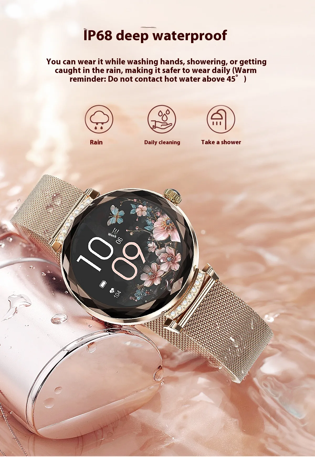 The water-resistant design makes the NX7Pro Women's Smart Watch a great accessory for women who are always on the move, no matter the weather.