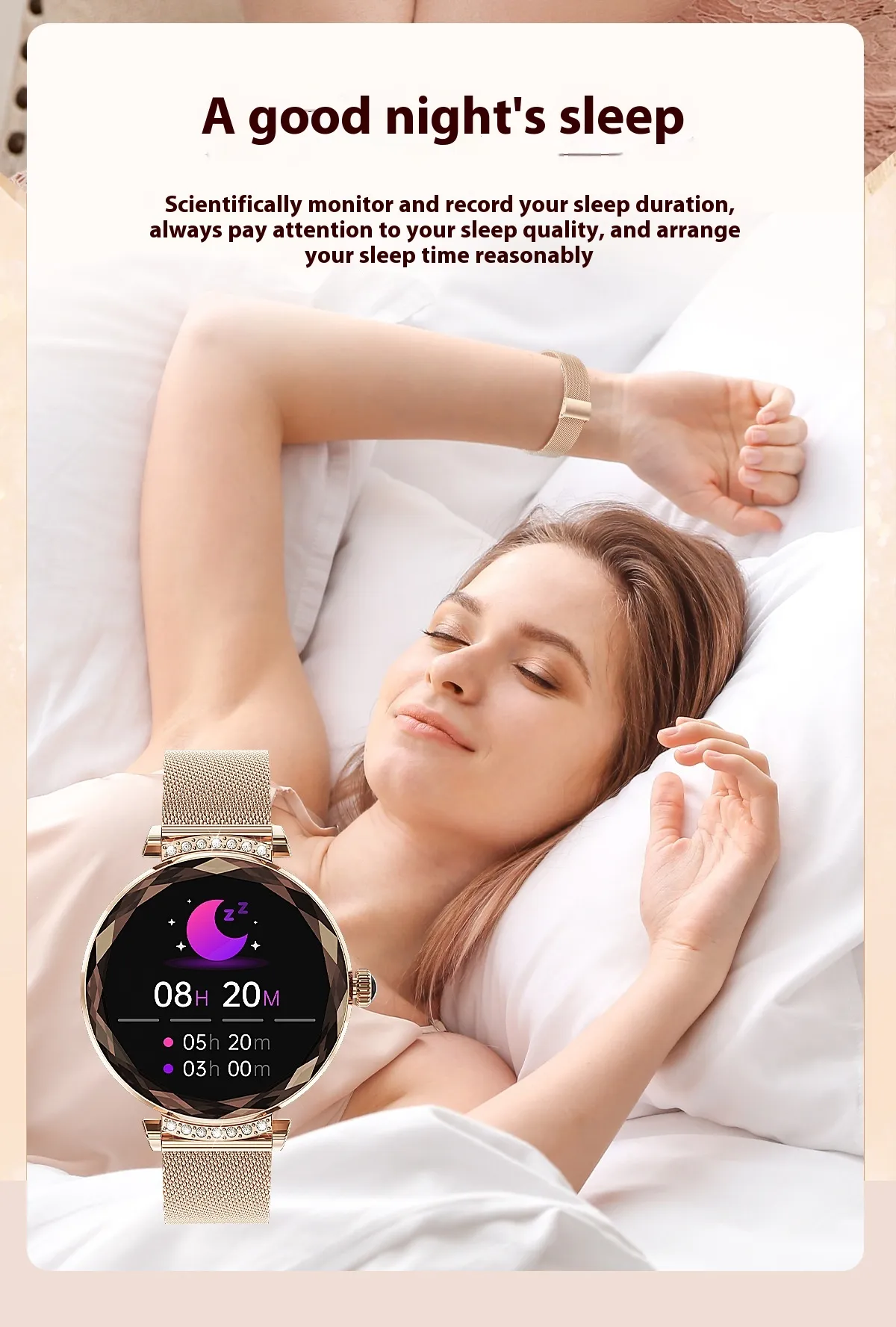 The NX7Pro Women's Smart Watch is designed to help you stay on top of your health and fitness goals. With built-in features like heart rate monitoring, sleep tracking, and step counting, you can keep track of your daily activity and progress. The watch also supports multiple sport modes to track specific workouts and help you improve your fitness routine.