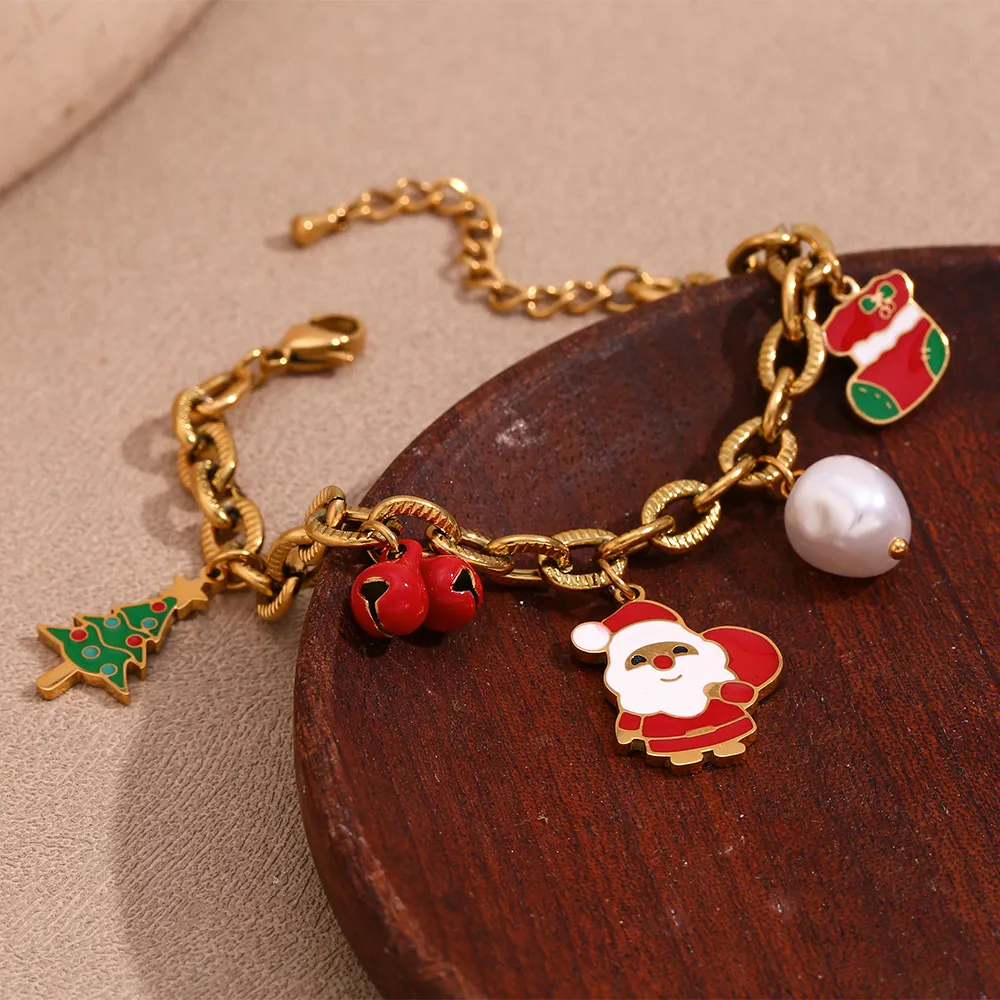 Celebrate the joy of the holiday season with our O-shaped Chain Cute Cartoon Santa Claus Socks Bracelet. This charming bracelet features a delightful design of cartoon Santa Claus wearing his iconic red hat and festive socks, making it a perfect accessory for Christmas parties or everyday wear during the holidays. Made from high-quality materials, the O-shaped chain is both durable and comfortable, ensuring it fits beautifully on your wrist. Its fun and quirky style adds a touch of whimsy to any outfit, whether you're dressing up for a festive occasion or looking to add some holiday cheer to your casual wear. Spread the joy of the season and make a statement with this adorable Santa Claus bracelet!