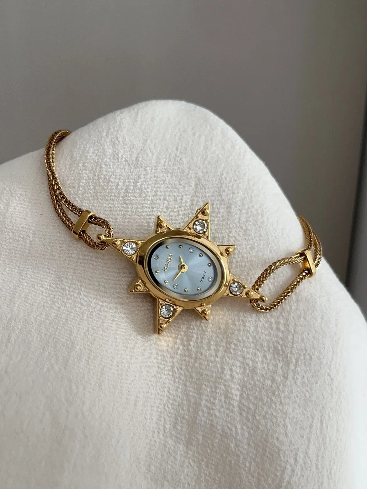At the heart of the watch lies the star design dial, which adds an artistic touch and enhances the retro aesthetic. The star-shaped details bring an element of creativity and charm to the watch face, making it both a functional timepiece and an artistic accessory.