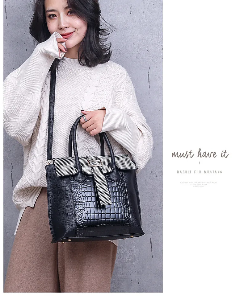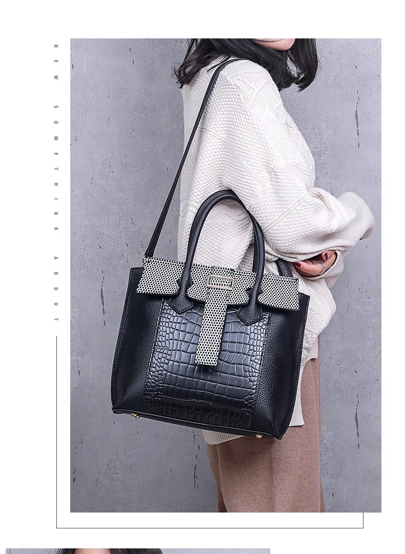 One-shoulder diagonal ladies crocodile pattern handbag