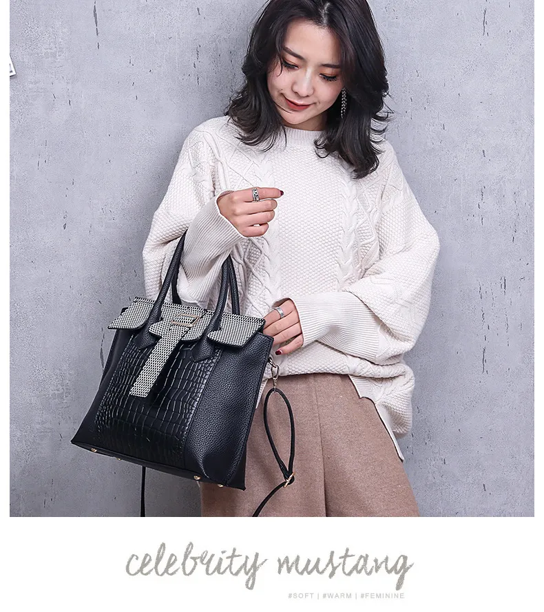 One-shoulder diagonal ladies crocodile pattern handbag