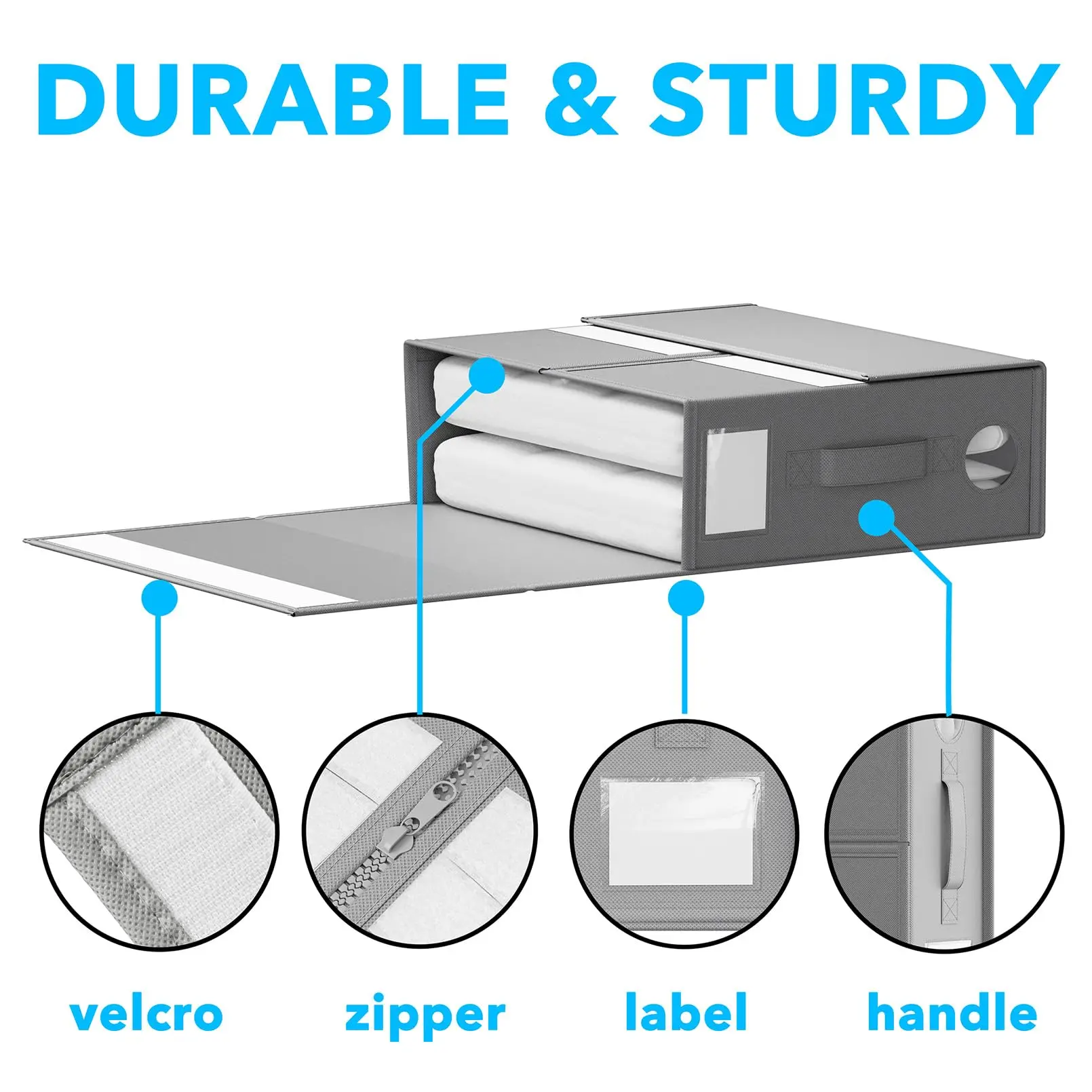 The clear viewing window allows you to easily see what’s inside without having to open the box. This feature helps you quickly locate the specific bedding you need, making it perfect for quickly switching out bedding with the seasons. The box is also designed with zipper closures to securely store your items and keep them safe from dust, dirt, or pests.