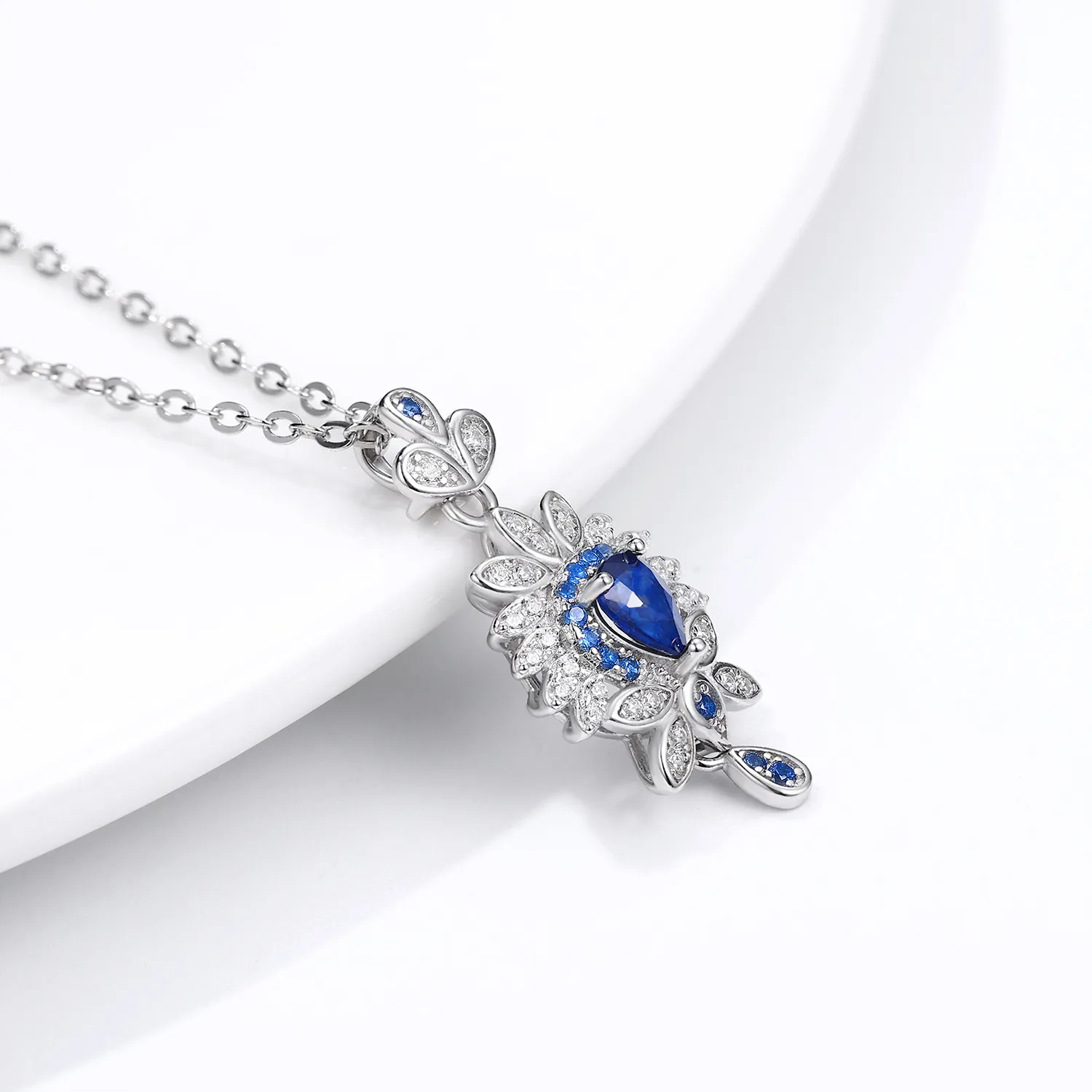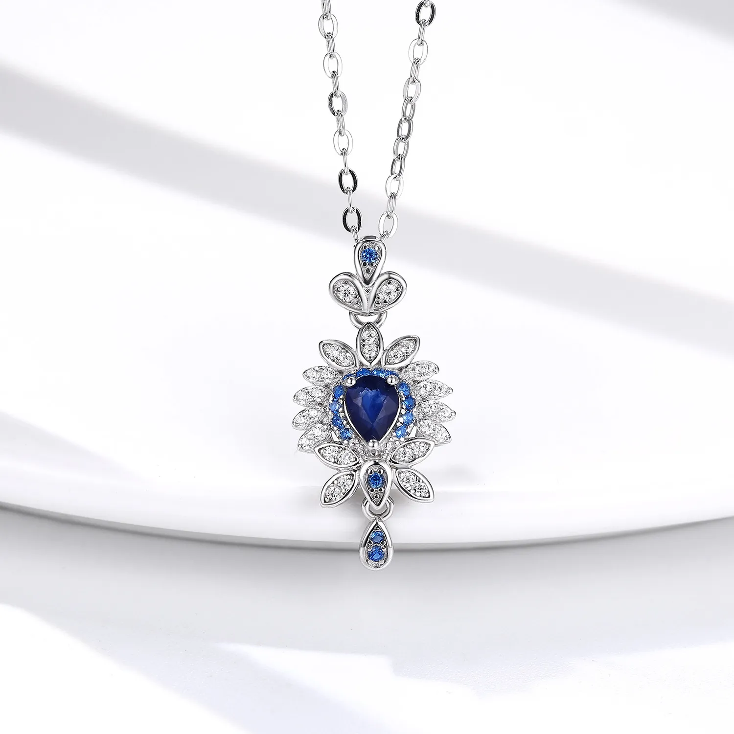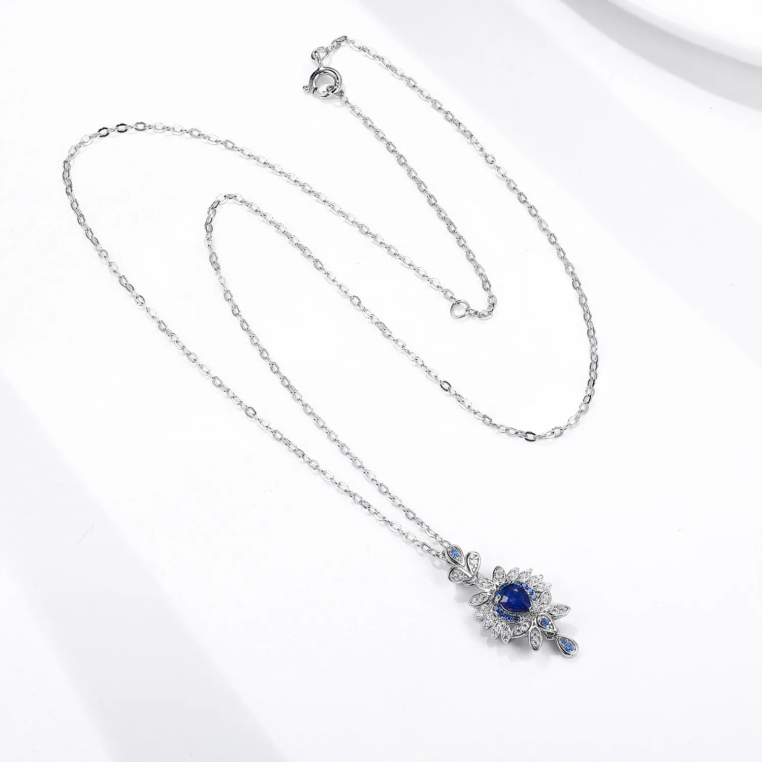 Original Design Natural Sapphire Necklace Female Flower Shaped Small Group Luxury