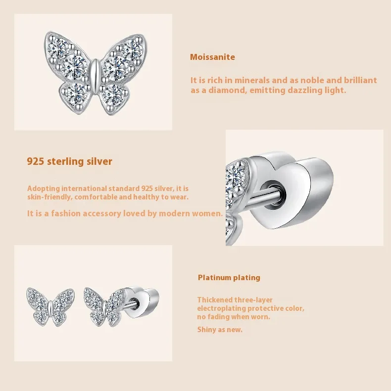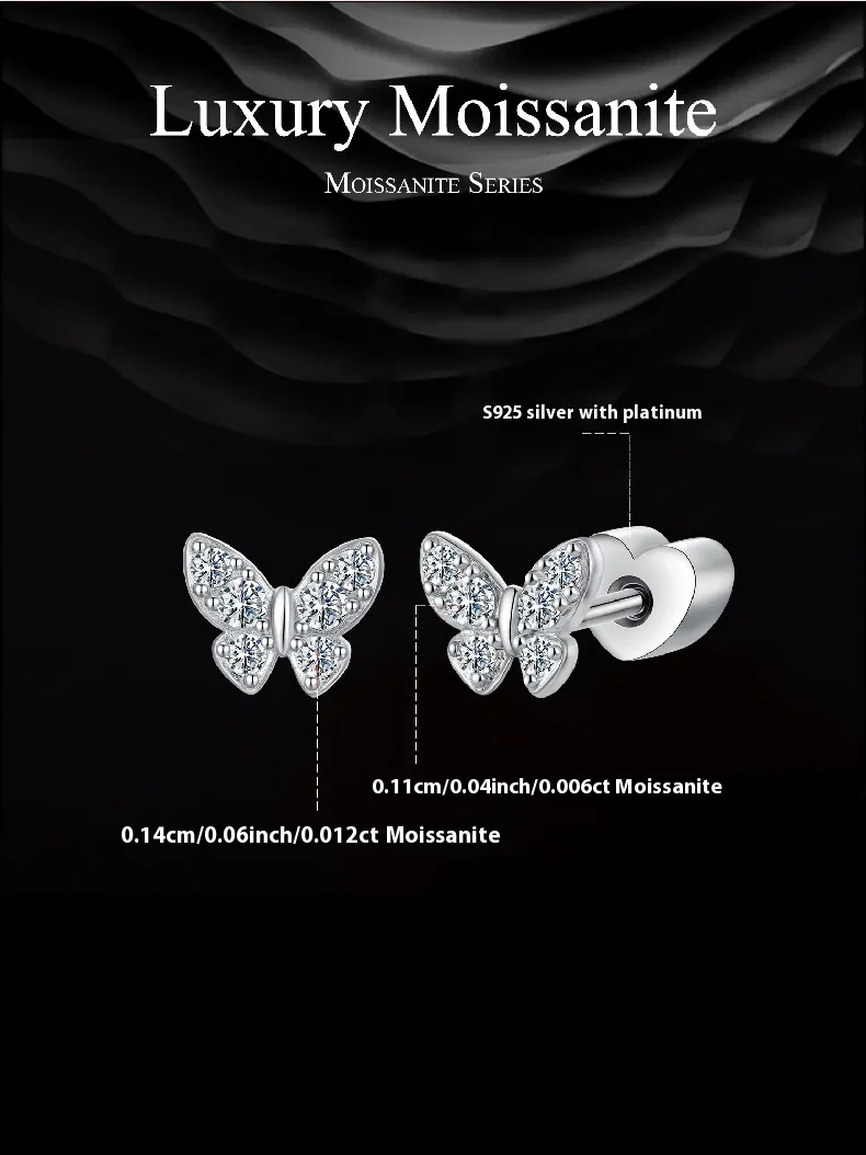 Original Exquisite Butterfly Moissanite Stud Earrings