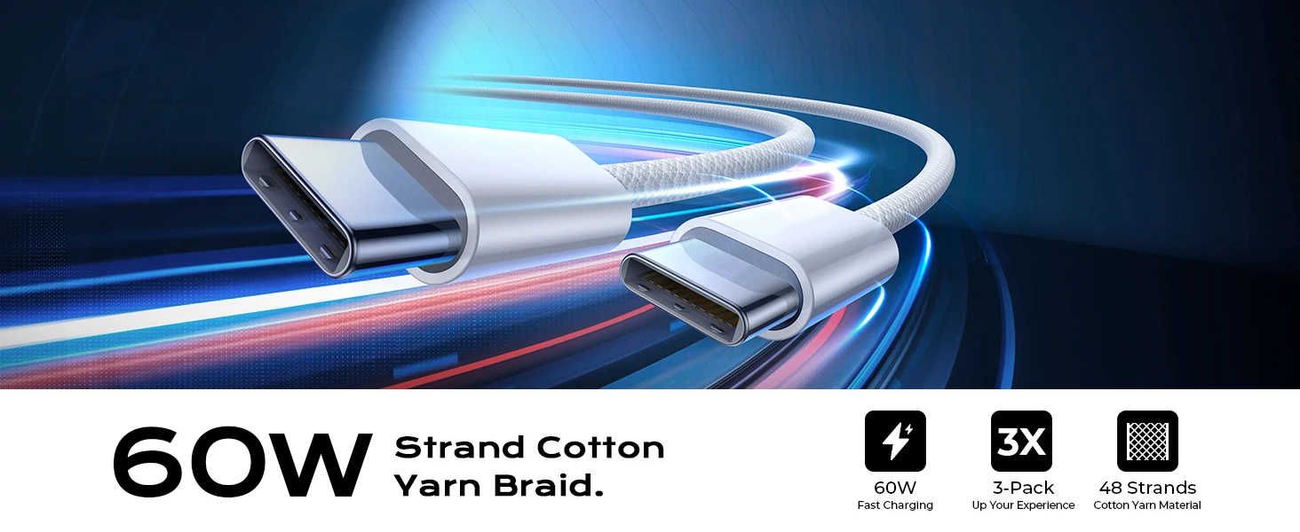This usbc to usbc cable support PD3.0/QC3.0/QC4.0 fast charging up to 65W Max (20V/3.25A) / 60W (20V/3A) with USB-C Power Delivery adapters such as 30W/45W/60W