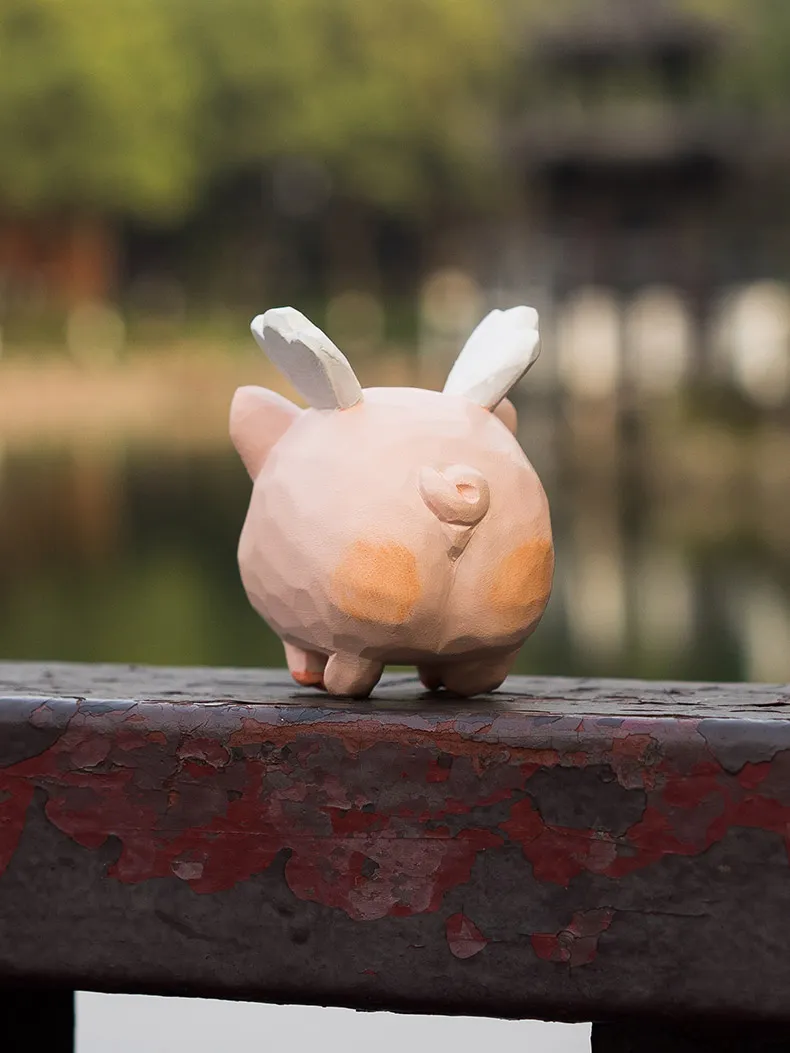Where to Display the Original Wood Carving Small Flying Pig Tabletop Decoration