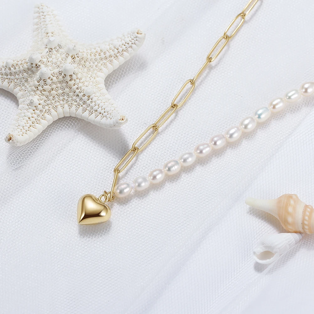 The blend of natural pearls, paperclip links, and a heart pendant ensures this necklace is both trendy and timeless.