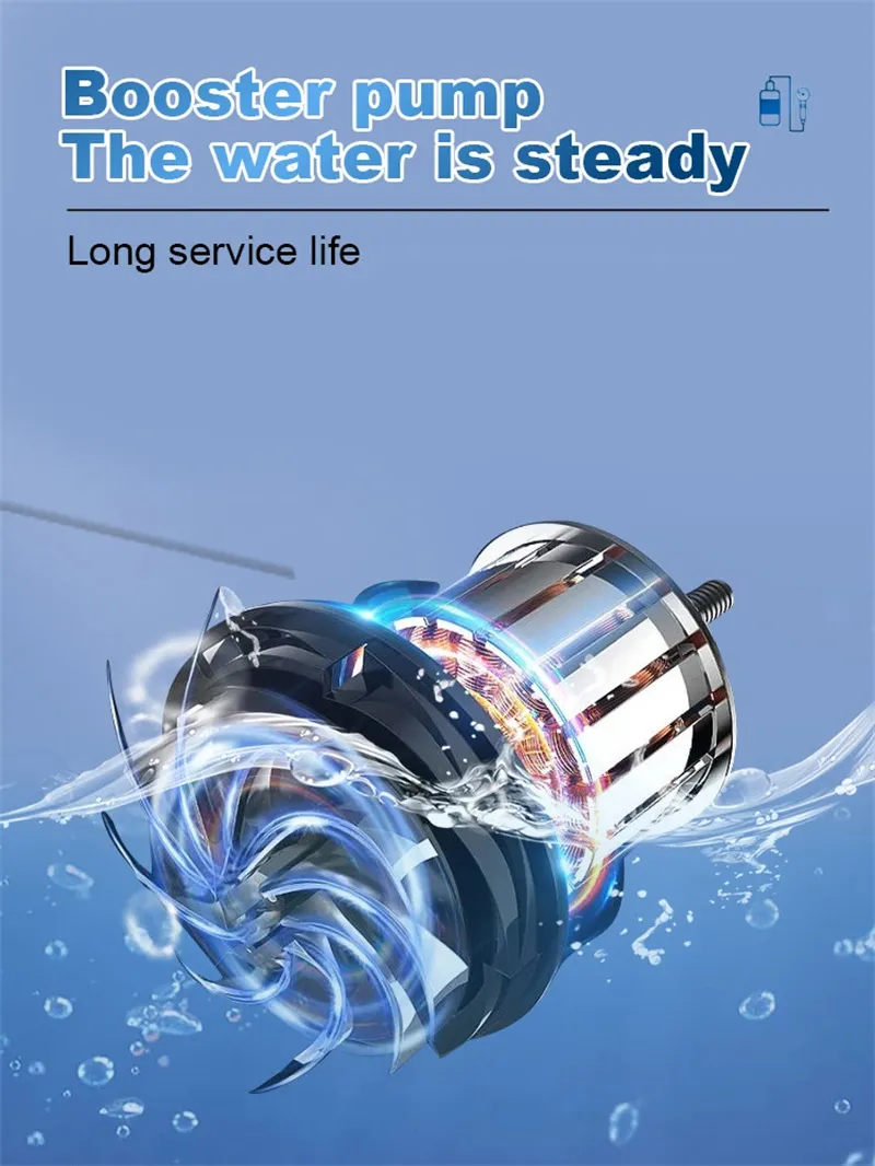 Humanized Design: The water pump supports low and high-mode water flows, and the showerhead supports 3 water output