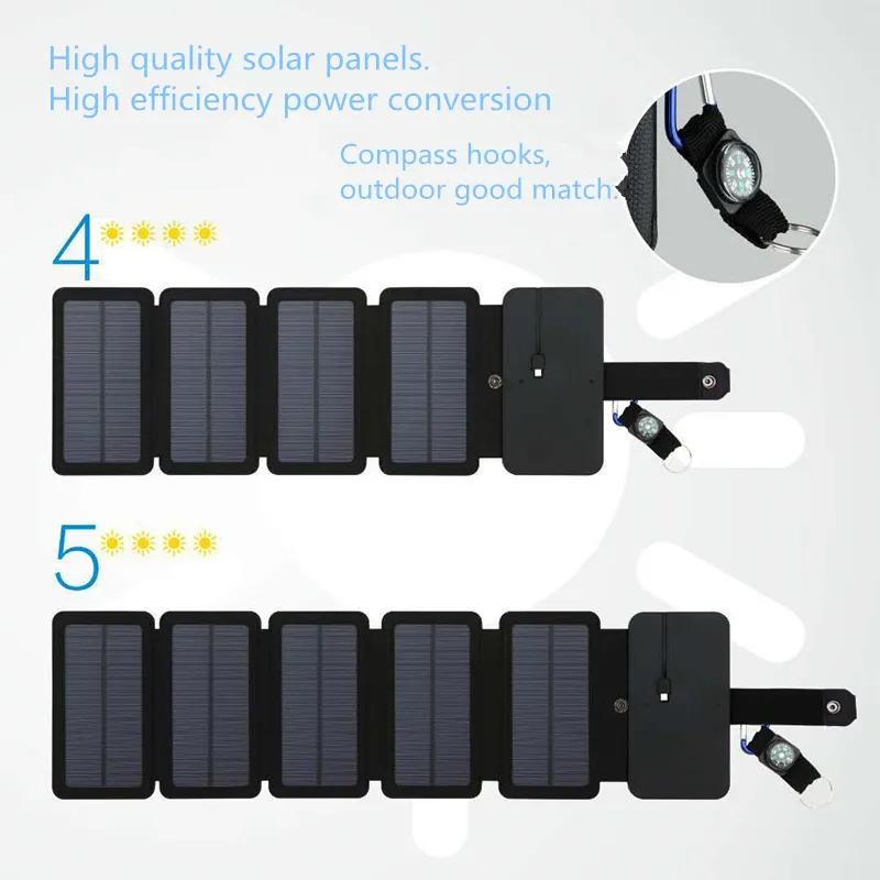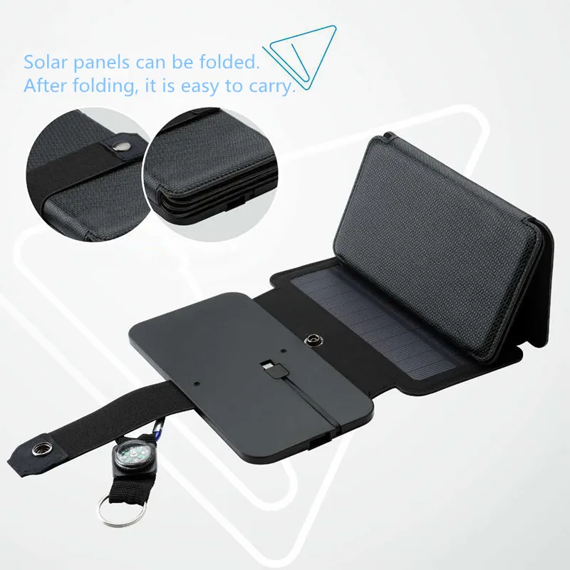 One of the most convenient aspects of this solar panel charger is its foldable design. When not in use, it folds down into a compact, lightweight package, making it easy to store in your backpack or luggage. This space-saving feature is particularly useful for hikers, campers, and travelers who need to minimize the size and weight of their gear.When unfolded, the solar panel reveals a larger surface area, maximizing its ability to capture sunlight and efficiently charge your devices. This portability ensures that you can take it with you wherever you go without adding extra bulk or weight to your gear.