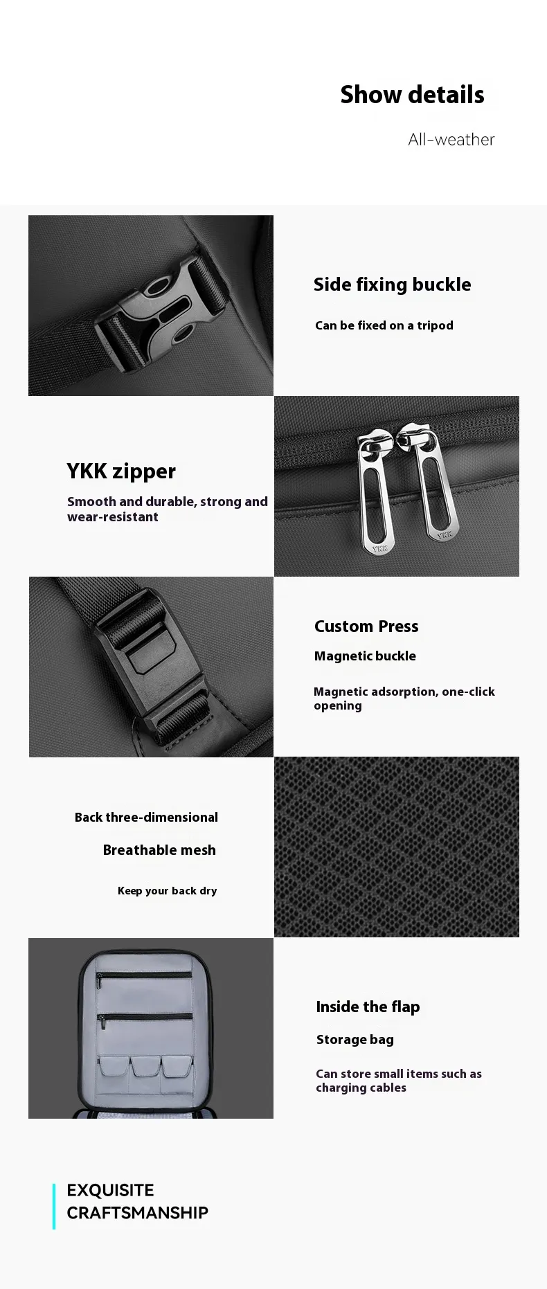 dusty environments.The Multifunctional Backpack features a spacious main compartment that can accommodate a camera, multiple lenses, a