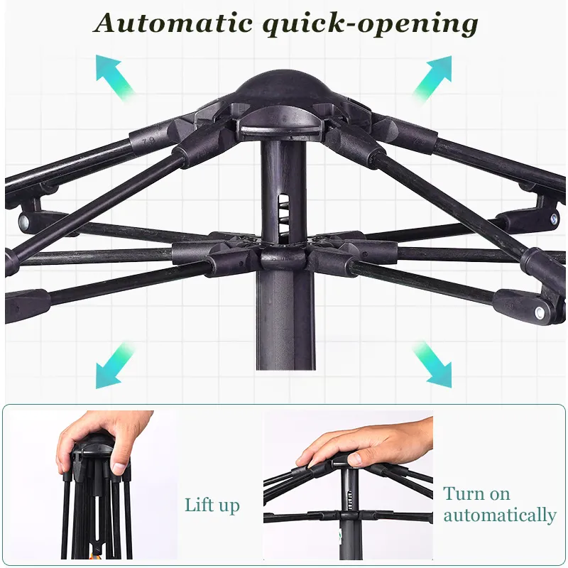 1. Fully Automatic Quick-Opening System: This tent features a fully automatic quick-opening system that allows you to set up your tent in under a minute. Simply release the tent from its storage bag, and watch it spring open effortlessly. This fast setup makes it ideal for campers who want a simple, stress-free experience.