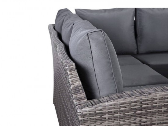 The Outdoor Rattan Corner Dining Set is crafted from high-quality, weather-resistant rattan that is both durable and stylish. The natural look of rattan complements any outdoor setting, from modern to traditional. The sturdy construction ensures that this set can withstand the elements, making it ideal for year-round use. The dark rattan contrasts beautifully with the plush cushions, creating a sophisticated and inviting space for outdoor dining and lounging.