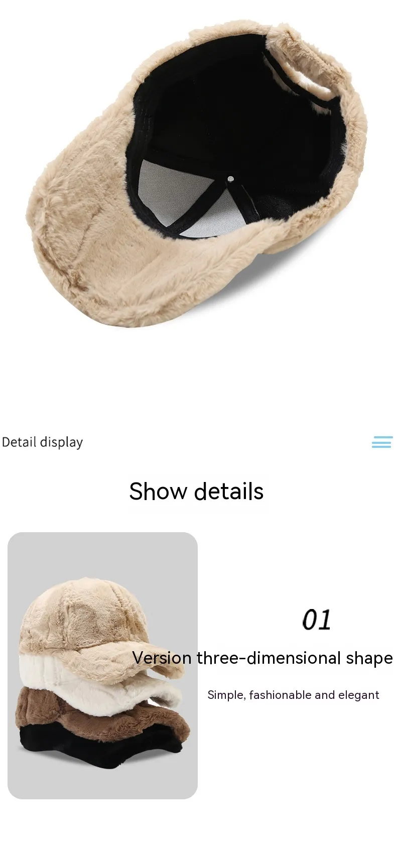 Outdoor Thickened Fleece Baseball Cap Casual Pure Color Warm Keeping Rabbit Fur Peaked Cap Winter Men