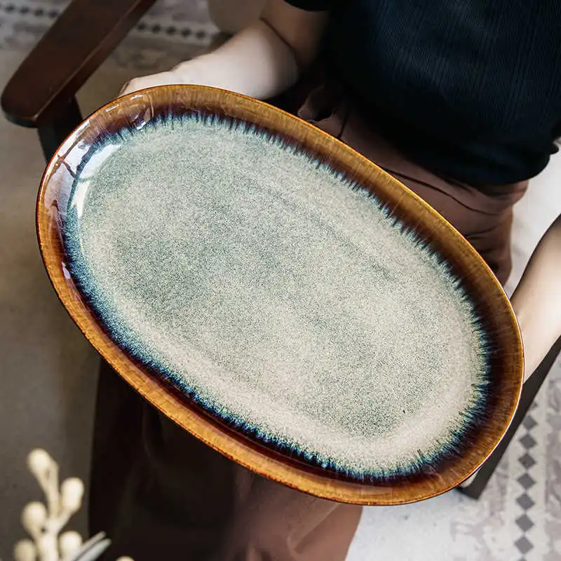Oval Ceramic Steamed Fish Plate Slight Flaw