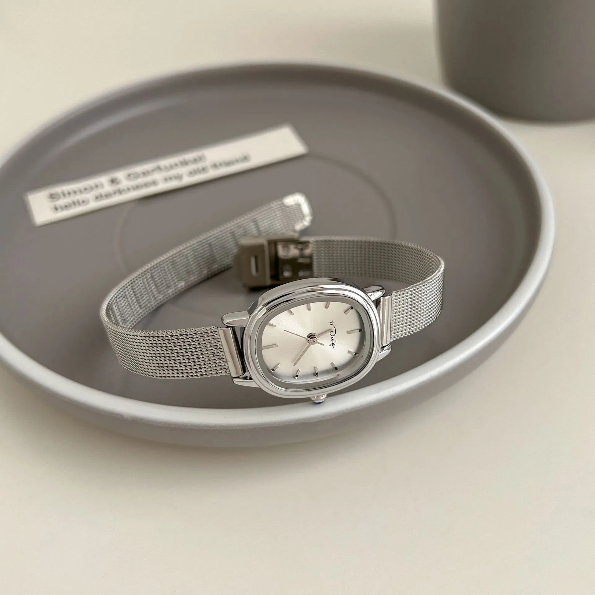Oval Small Dial Niche High-grade Simple Waterproof Women's Mesh Strap Watch