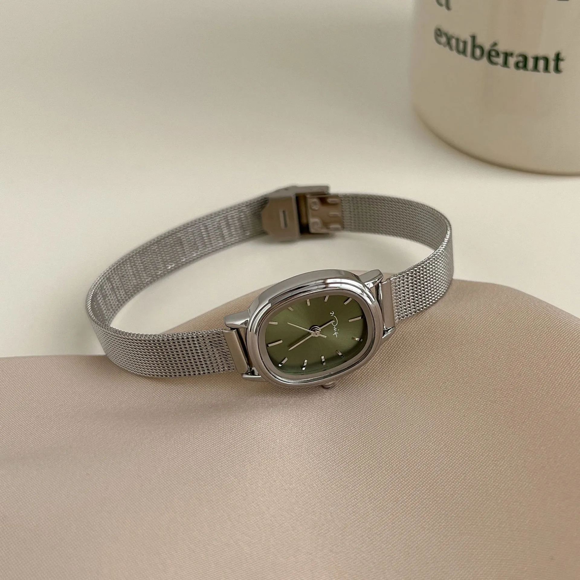 Oval Small Dial Niche High-grade Simple Waterproof Women's Mesh Strap Watch