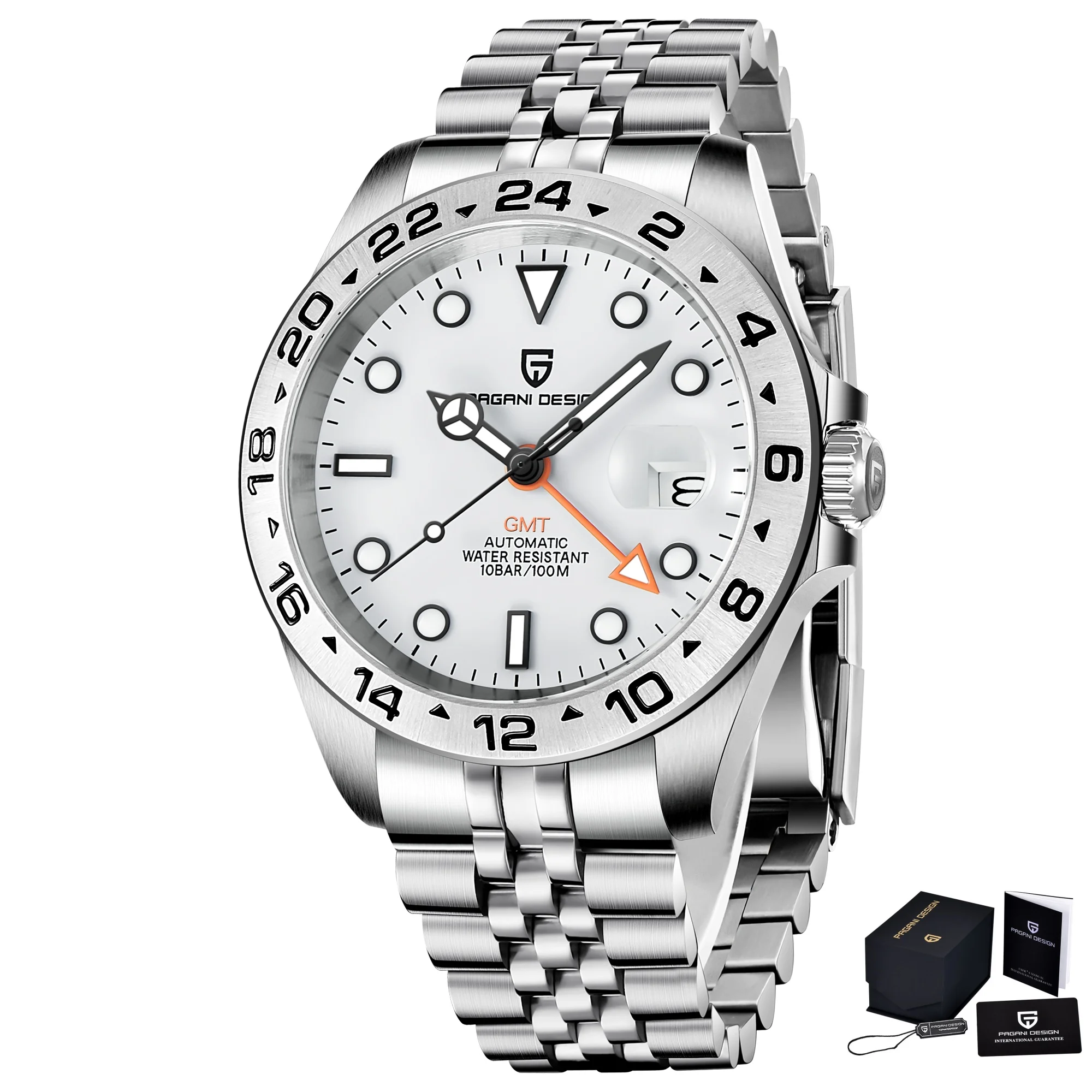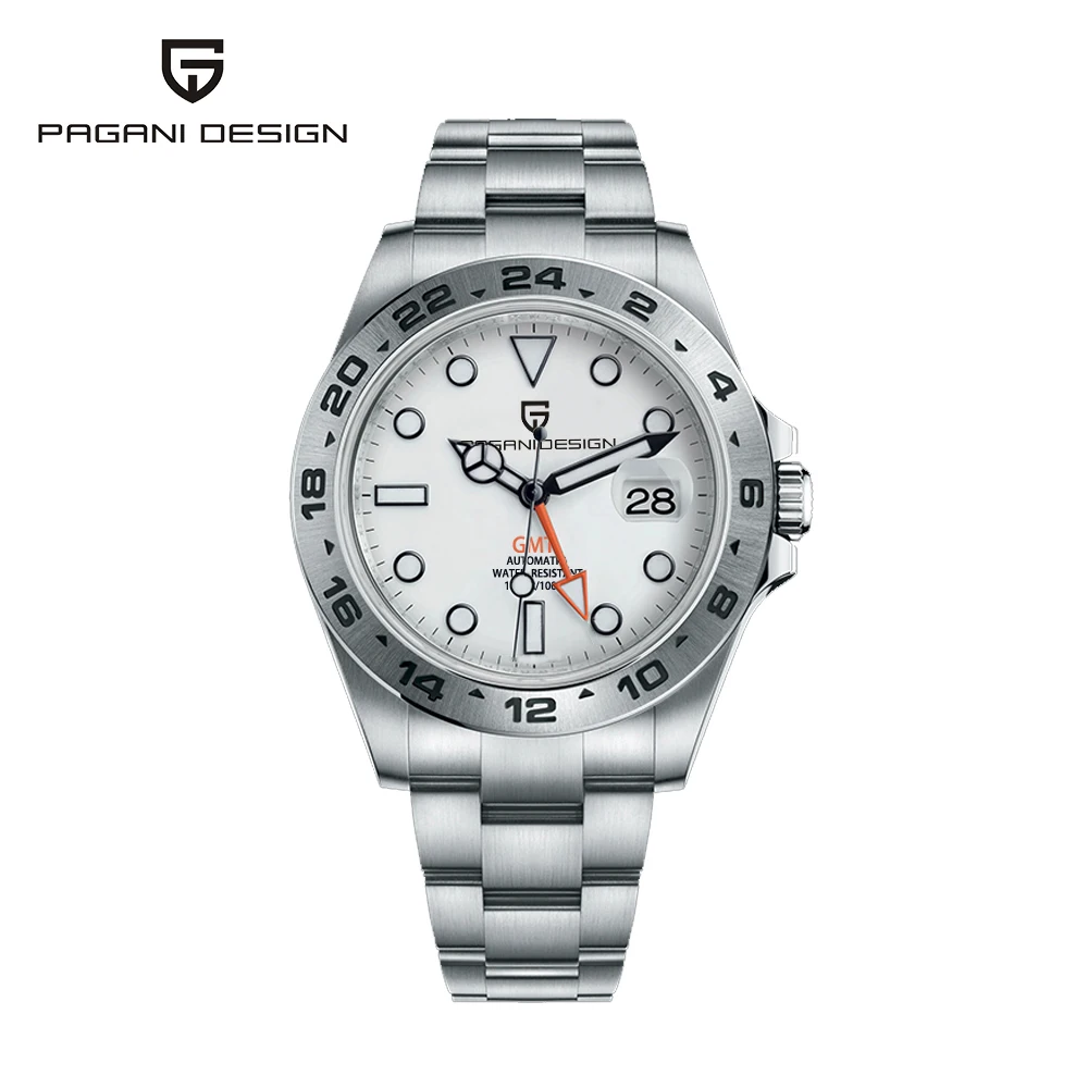 The 2024 PAGANI Design Men's Automatic Mechanical GMT Watch is a stunning blend of craftsmanship and innovation. With its sleek stainless steel build, sapphire crystal, and GMT functionality, this watch is designed for modern men who value elegance and reliability. Whether for professional wear or casual outings, this waterproof timepiece elevates your style and ensures accurate timekeeping.