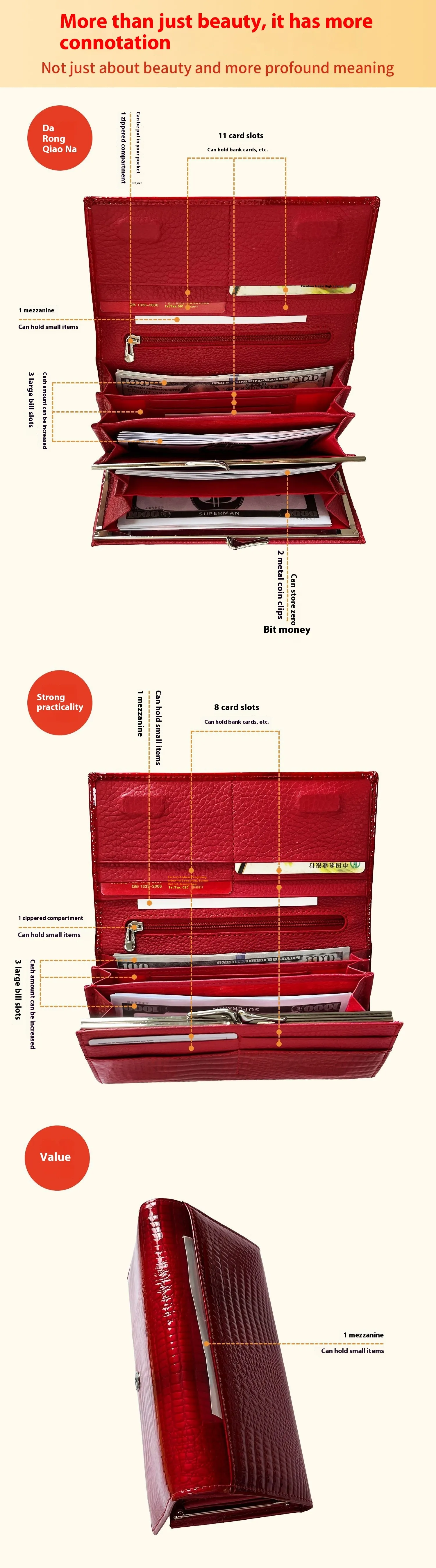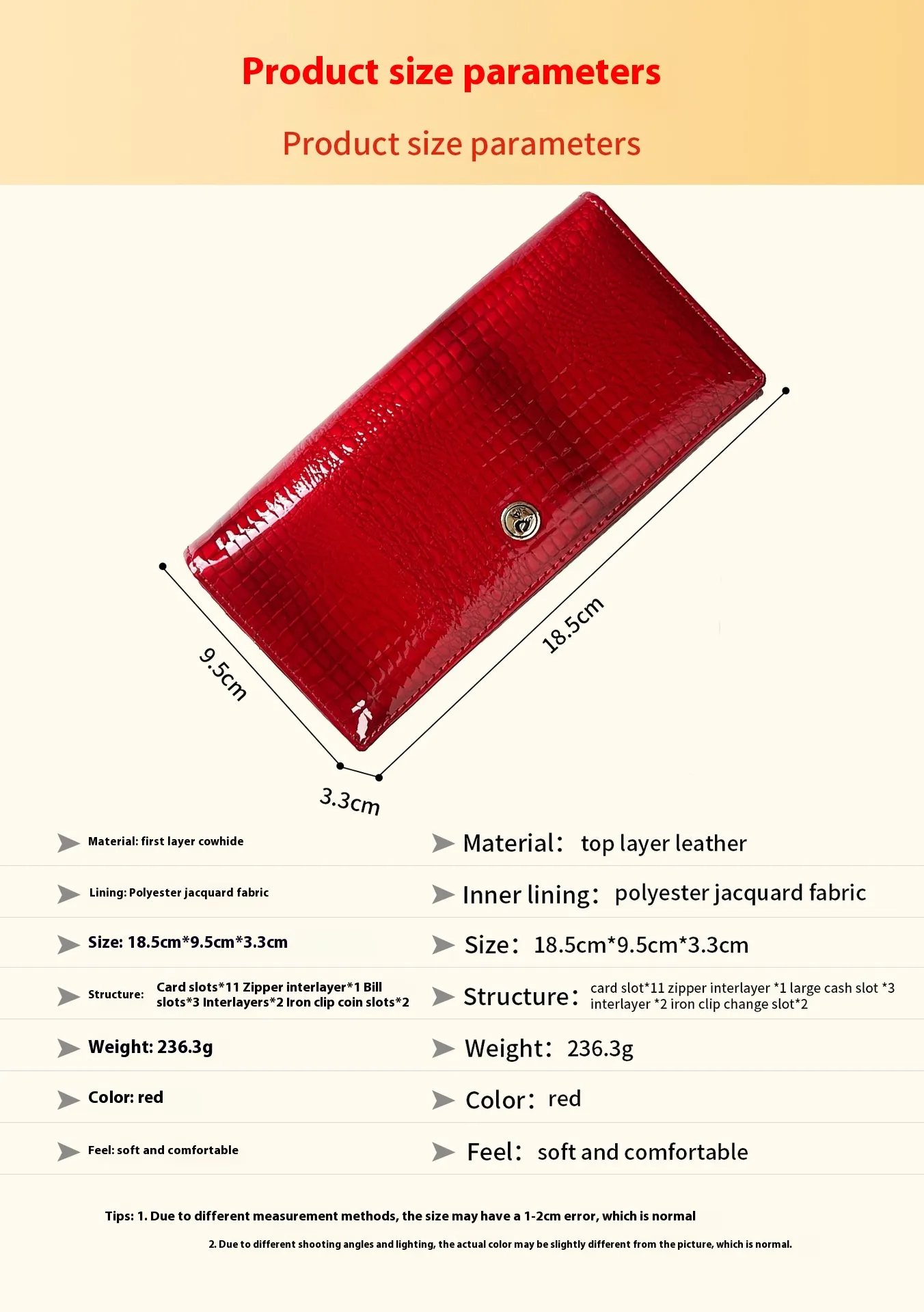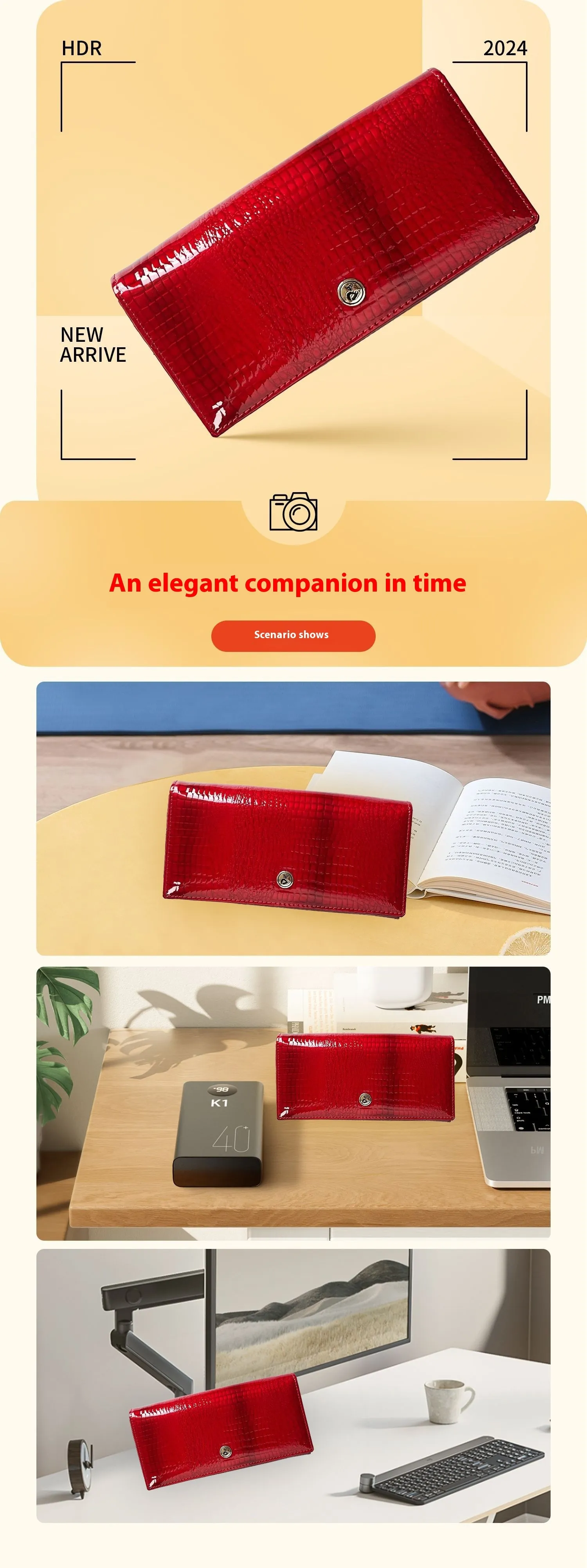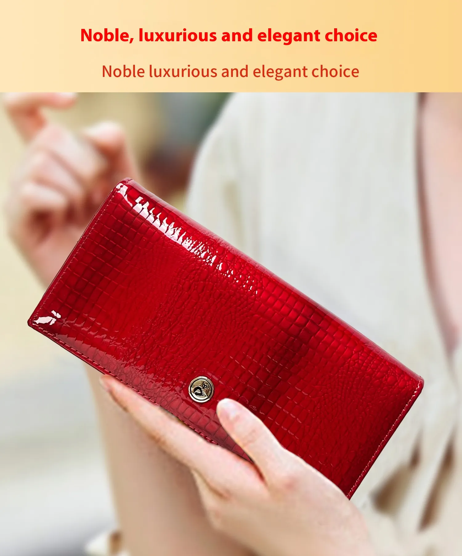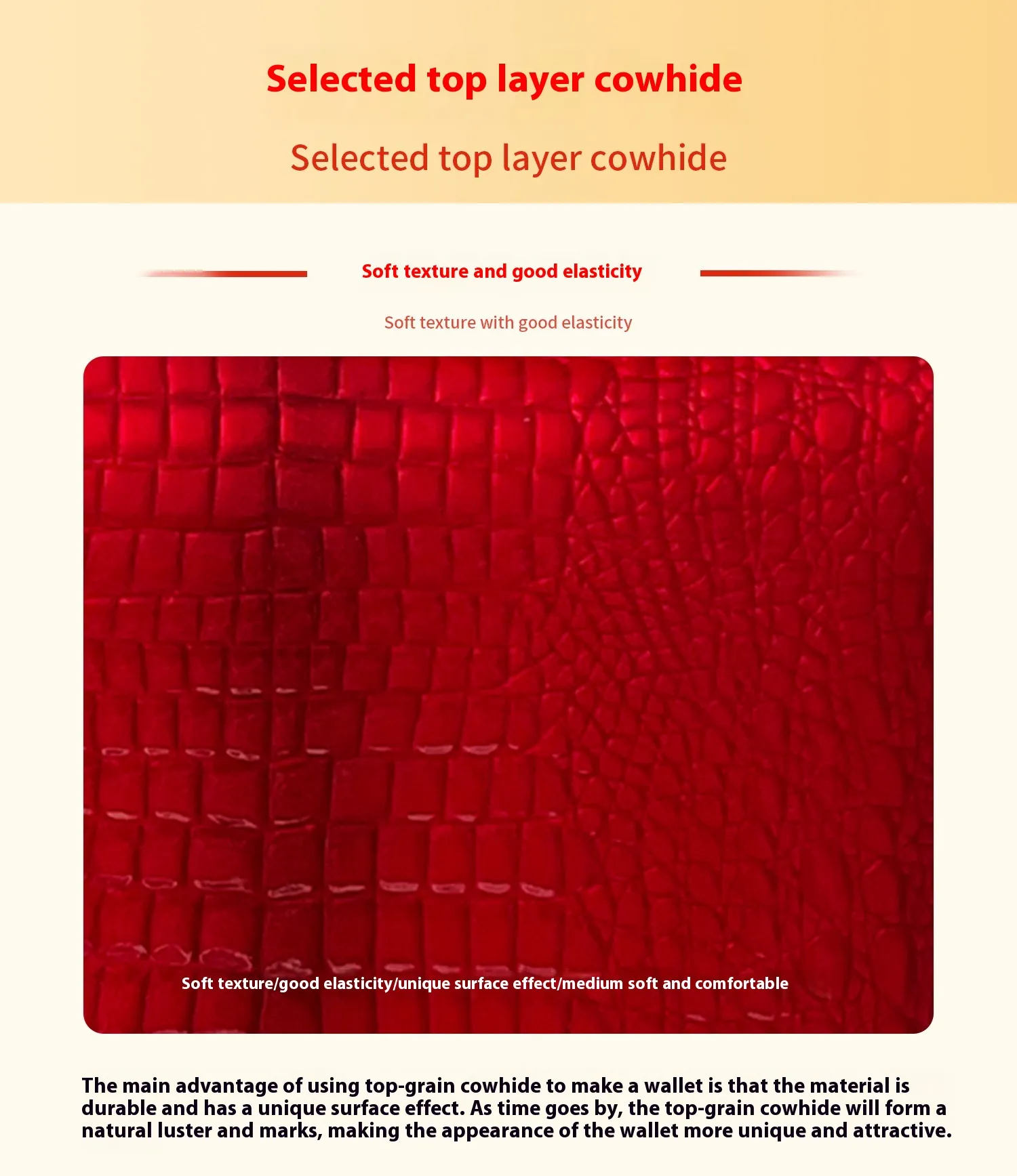 Crafted from the finest patent leather, this wallet features a realistic crocodile pattern that exudes a sense of luxury and sophistication. The glossy finish not only enhances the vibrant red but also provides durability and resistance to scratches and scuffs, ensuring your wallet remains pristine.