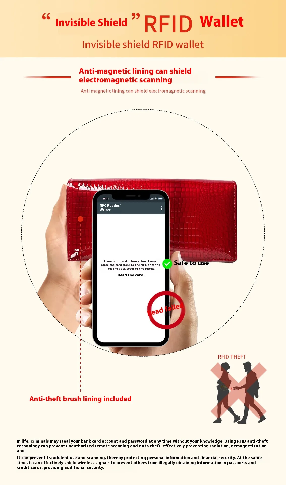 The centerpiece of this wallet is its high-grade red lock clutch, combining elegance with enhanced security. The lock ensures your valuables are safe while adding an element of upscale design.