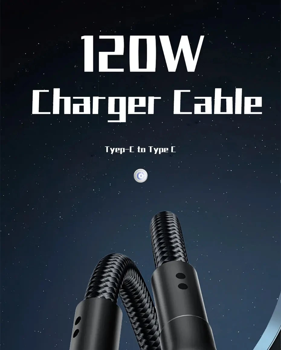 This PD 120W USB-C to USB-C cable supports super fast charging and quick data transfer for devices like Samsung S24, S23, iPhone 15 Plus, Pro Max, and Xiaomi 11. Designed for high-speed performance, it ensures efficient power delivery and reliable connectivity for your mobile devices.