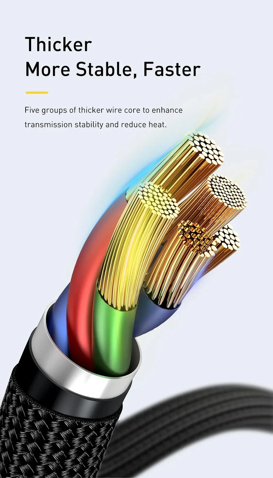 Five groups of thicker wire core to enhancetransmission stability and reduce heat.
