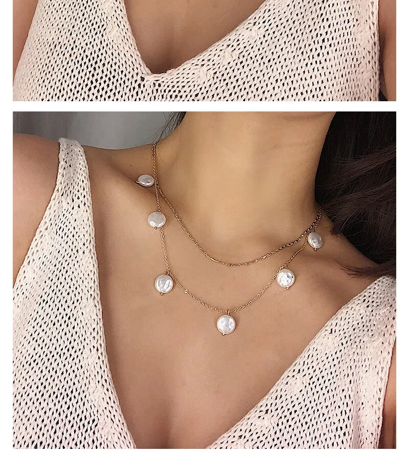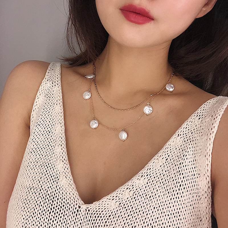 Style: simpleMaterial: Pearl + copper clad iron chain