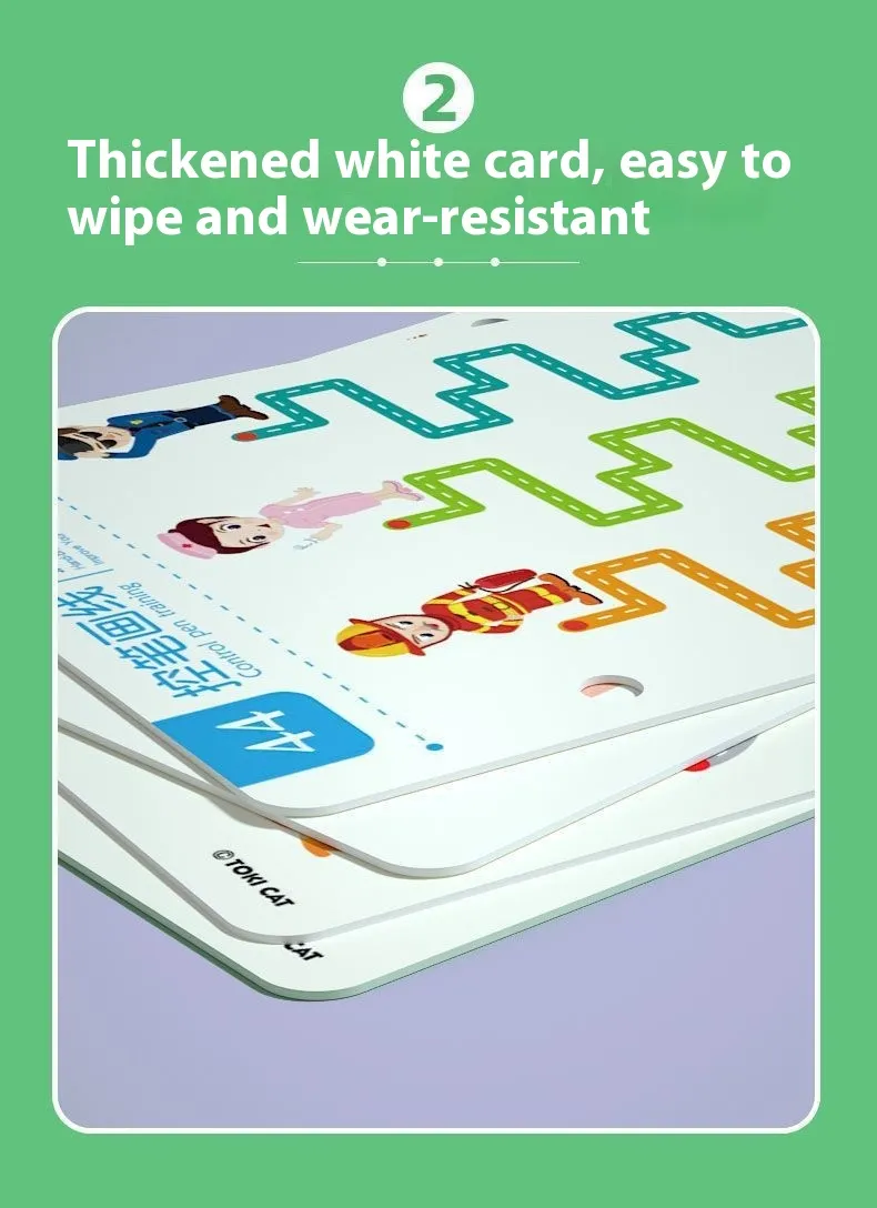 Crafted with child-safe, durable materials, the toy is suitable for repeated use, making learning both fun and effective. Its engaging design motivates children to complete various tracing, drawing, and writing exercises, helping them develop concentration, patience, and problem-solving skills while improving pen control.