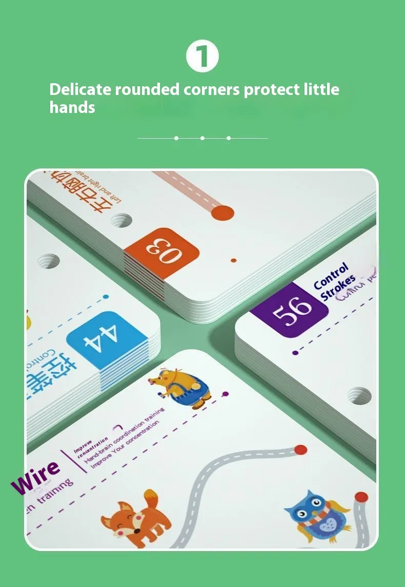 Pen Control Training 64 pages+5pcs * Pen+1pcs * Wiping Board/Drawing Point Connection 49 pages+5pcs * Pen+1pcs * Wiping Board/Left and Right Brain Development 32 pages+5pcs * Pen+1pcs * Wiping Board