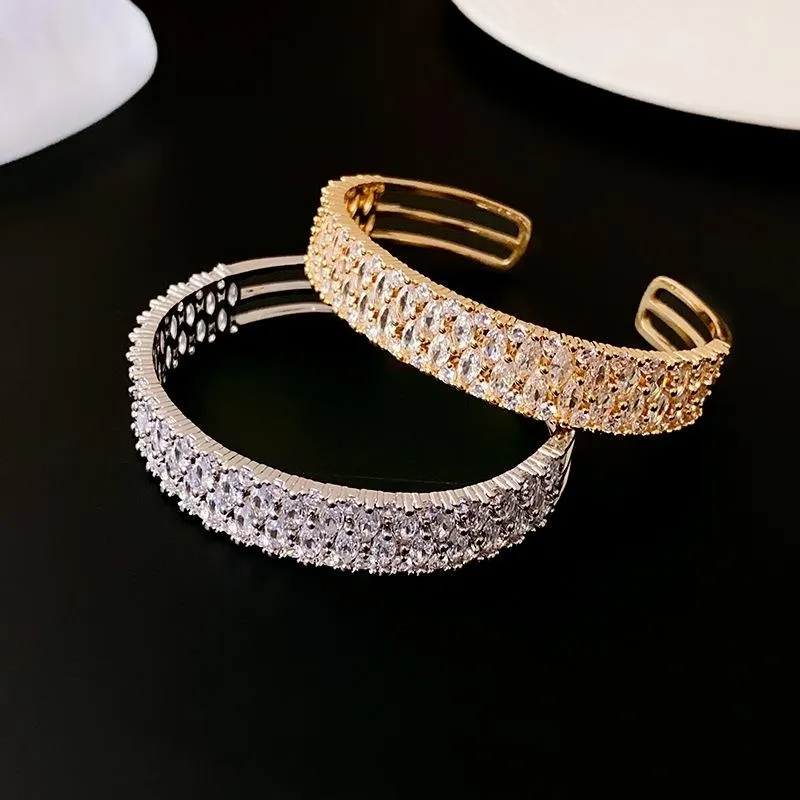 Personality Affordable Luxury Fashion Real Gold Plating Zircon Metal Open-ended Bracelet