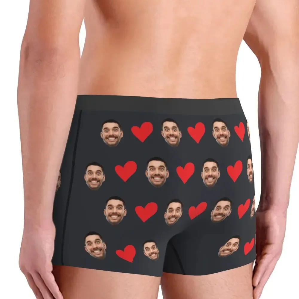 Personalized Face Photo Underwear – Custom Heart Boxer Briefs for Men – Unique Gift for Husband, Dad, or Boyfriend