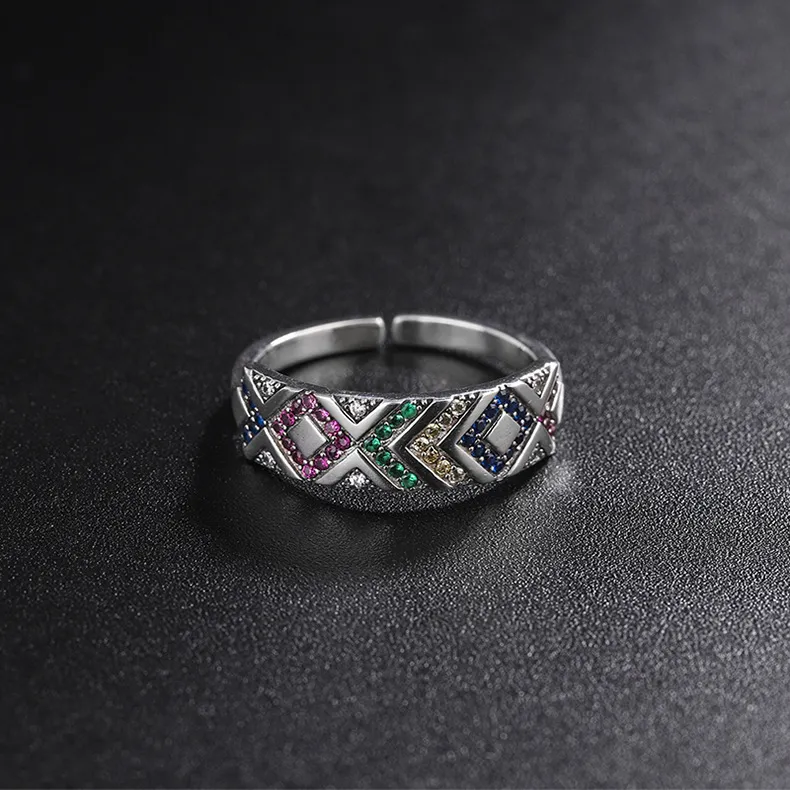Personalized Luxury And Colorful Tribal Stripe Ring