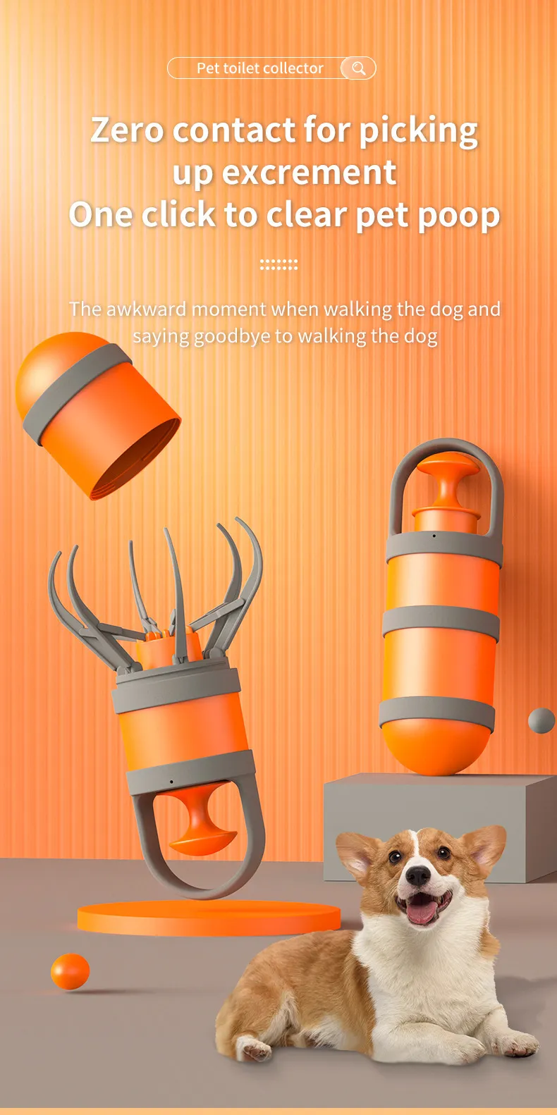 hygienic manner, minimizing any contact with waste. The shovel is also designed to be easy to scoop up waste without it slipping or making a