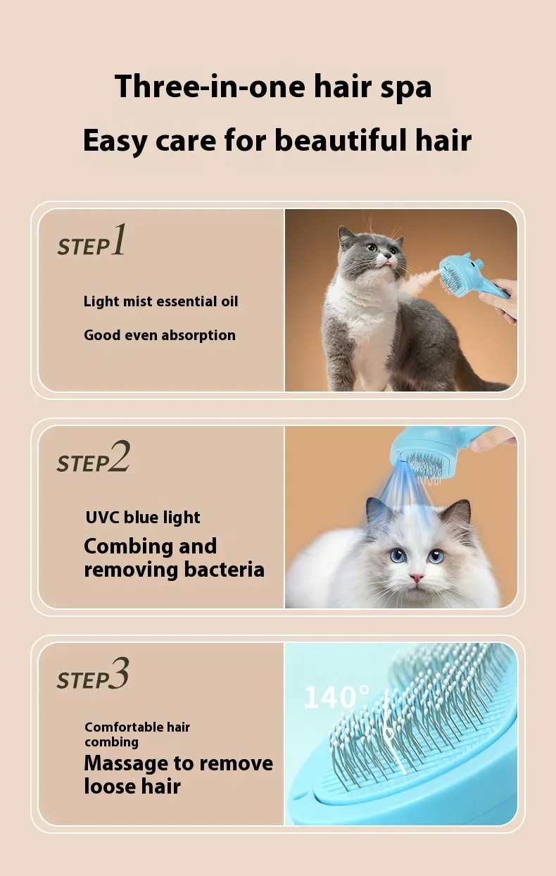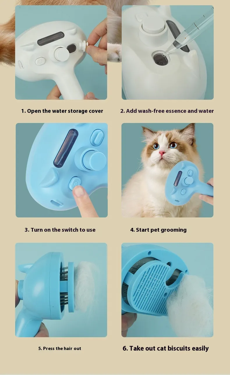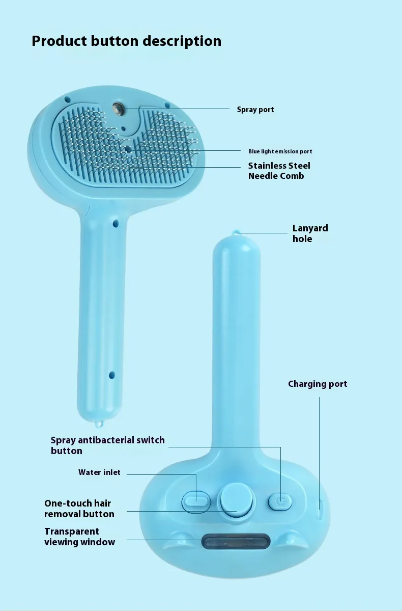 Pet Spray Comb Rechargeable Float Hair Cleaning One Key Hair Removal Comb