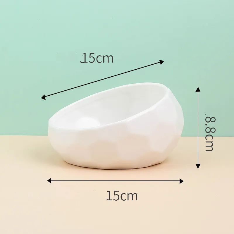 The ceramic oblique bowl is designed with smaller pets in mind, offering just the right size for cats and small dogs to enjoy their meals comfortably. The tilted design is particularly beneficial for cats, who often prefer to eat from a slightly elevated position, reducing strain on their necks.