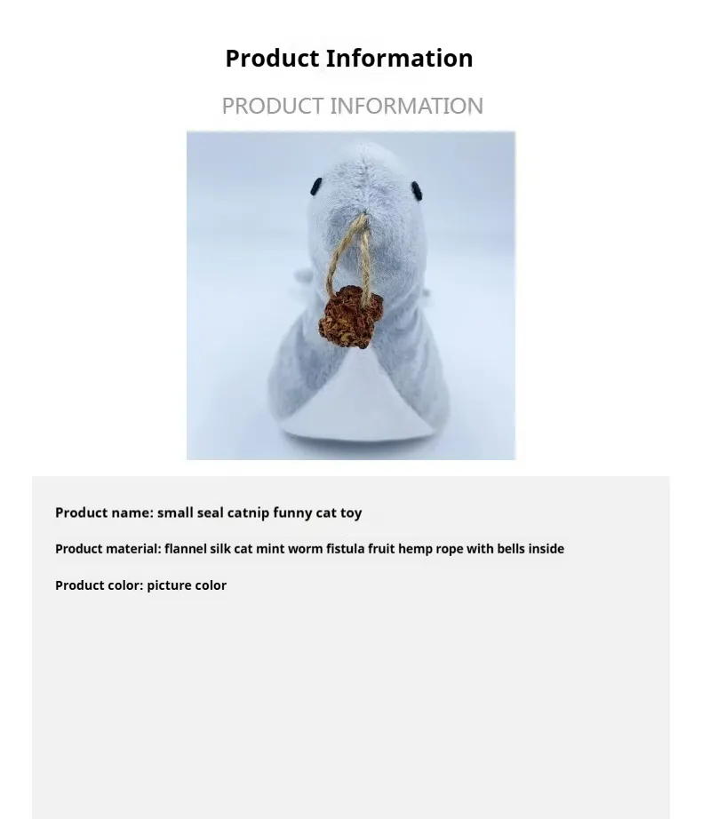 Product Description: Pet Toys Cat Sea Lion Plush Toys – Fun and Interactive Catnip and Bell Sound Toys for Playful Cats
