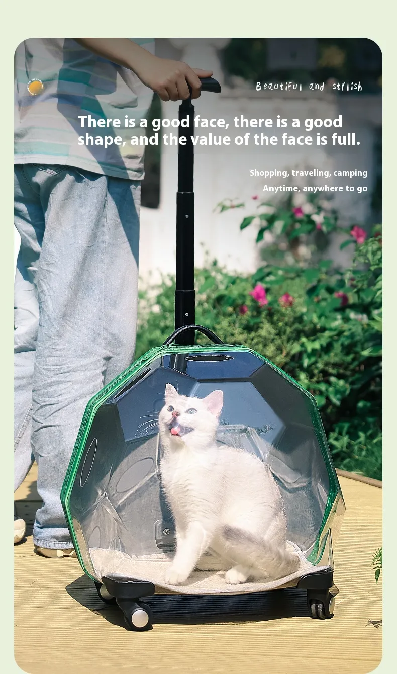 - Whether you're a cat lover or a small dog owner, the Pet Trolley Portable Cat Luggage is designed to cater to the needs of both. With adjustable straps and ample room, your pet can comfortably sit or lie down during travel.