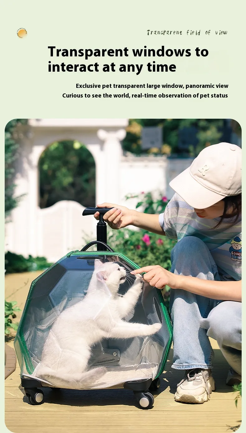 Pet owners will love the easy-to-use design of this pet trolley. The retractable handle and rolling wheels make transportation a breeze, while the transparent body allows you to check on your pet without needing to open the case. The compact design also ensures that the luggage fits easily under airplane seats or in car trunks, making travel easier for both you and your pet.